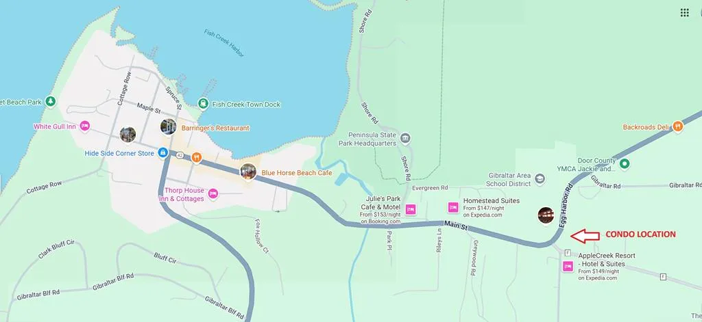 Walk to Fish Creek, YMCA, Peninsula State Park and DC Auditorium. Fully furnished, live here full time or rent out (min 1 week). Onsite pool, whirlpool, and laundry facilities. The condo comes with two storage closets just outside the front and back door. All furniture is included except the contents of the storage closets.