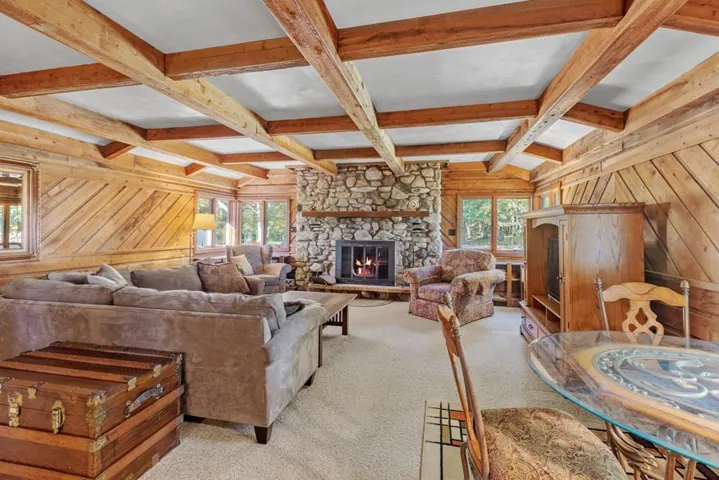 A handyperson's paradise with room to grow! This modest 2 bedroom 2 bath home has an spacious yard with ample sunlight for your gardens and partially wooded for exploring and collecting firewood for your wood burning stone fireplace. Get cozy in your large living room with tall beam ceilings. Additional flex living area with lovely light both day and night.