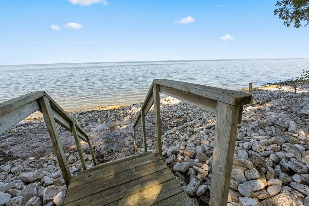 Rare Shores Condo offering just south of Egg Harbor. With wooded views from an open porch and a walk-out deck footsteps from the shores of Green Bay, this is a property you will love. Large living room boasting stunning water views and a water view primary suite with private deck. This prime location south of Horseshoe Bay is convenient to golf, dining, concerts, wineries, shopping & parks. Onsite in-ground pool, too. Detached 1.5 car garage. Some furnishings available.