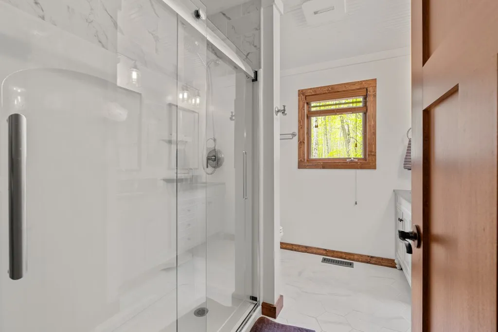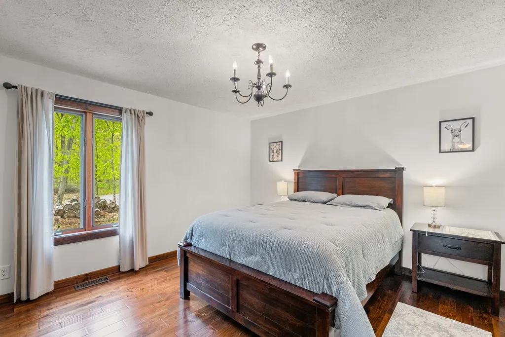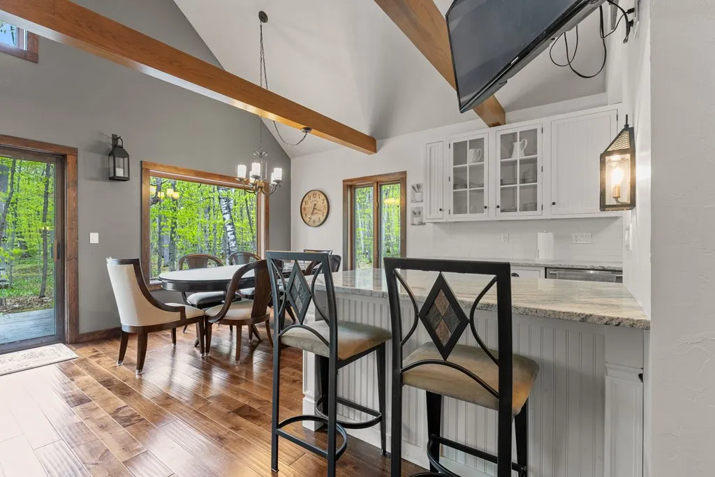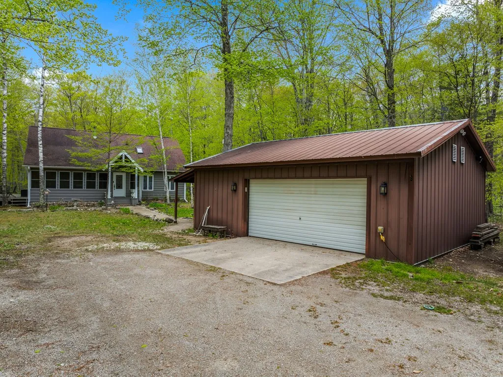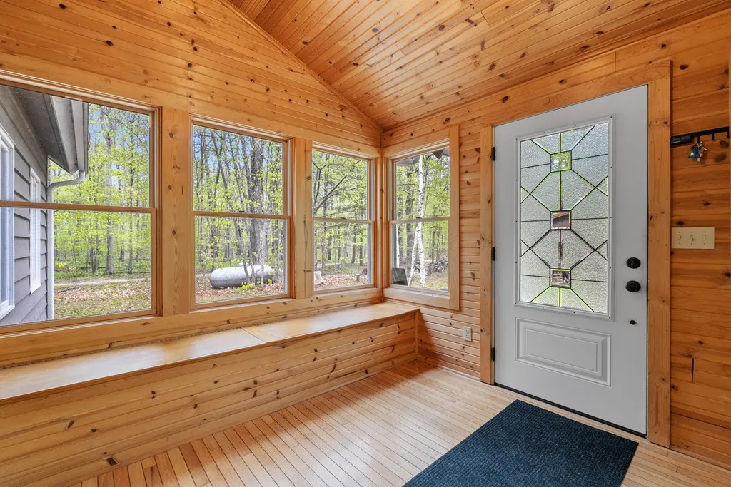 Tastefully remodeled 1.5 story home situated on 5.8 acres. Meandering trails to enjoy. Newly remodeled kitchen, bathrooms, flooring, doors, fixtures and recently updated mechanicals/appliances. Scenic 4 season room wrapped with windows to view the wooded landscape. 2nd floor loft is a third bedroom with full bath. Vaulted living room ceiling with wood beams and a wood burning stove. Oversized rear deck for patio furniture and an in-ground fire pit in the backyard. Sister Bay, Rowleys Bay and Newport State Park are nearby to enjoy. Adjacent 6.1 acre lot also available to purchase. A Fantastic Door County Get-A-Way!