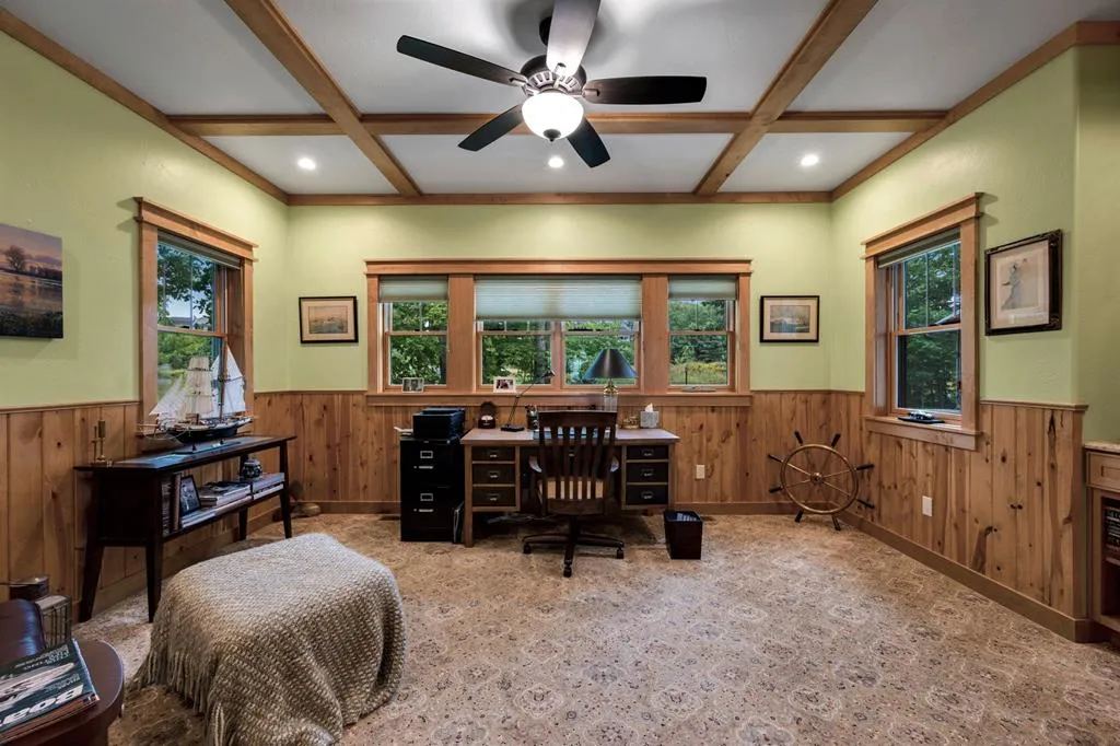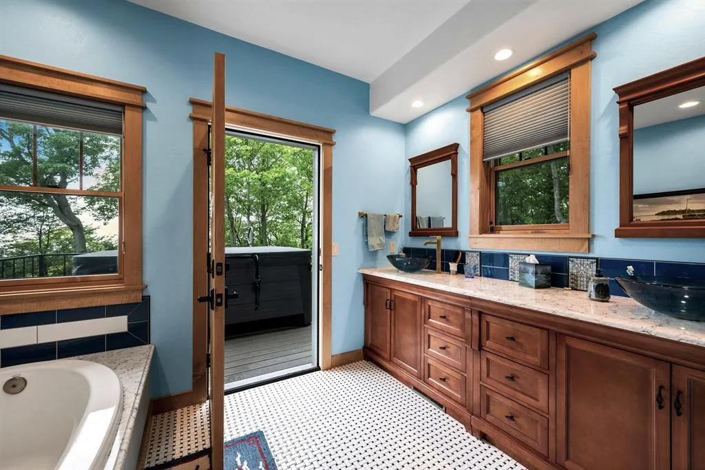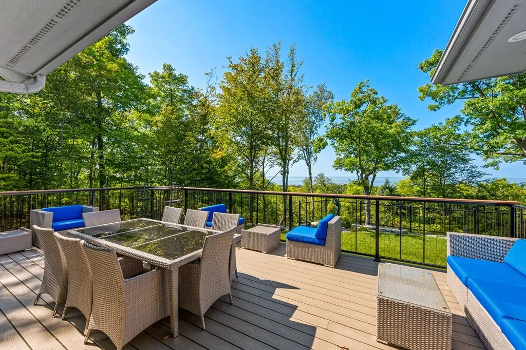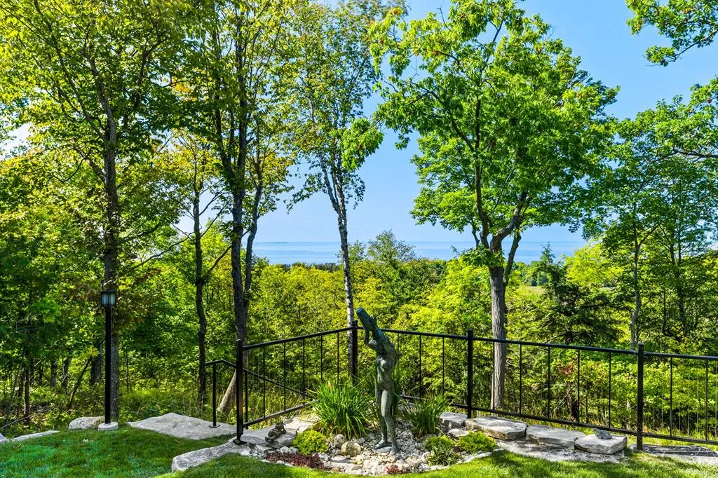 “Bluff Cottage” is a 4022 sq. ft. Craftsman style bungalow located on Greening Bluff with the Horseshoe Bay community. Sitting on the bluff 100 ft above the water it offers panoramic views of the sparkling waters of Green Bay by day and the lights of Marinette/Menomonie by night. The bright and cheerful interior offers 3 ensuite bedrooms each with full bath, knotty pine accent walls, architectural ceiling features, 2 antique gas log fireplaces and a lower-level game room. The exterior features 3 decks, one with hot tub and a lower-level patio with a firepit. Enjoy the wooded/professionally landscaped yard complete with yard artwork and traced lawn area. Hot tub, pool table and garden feature included in sale price.