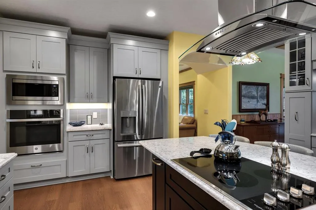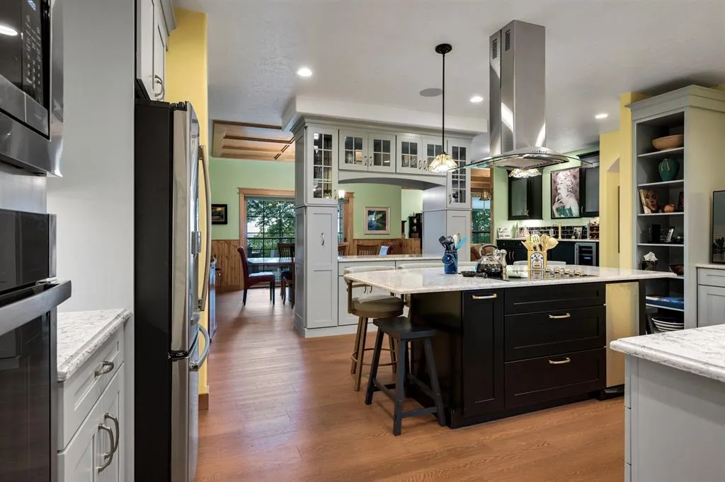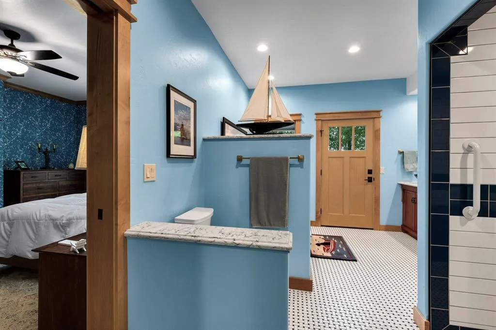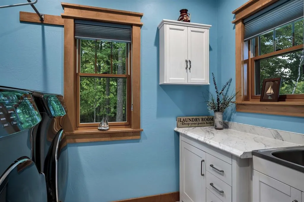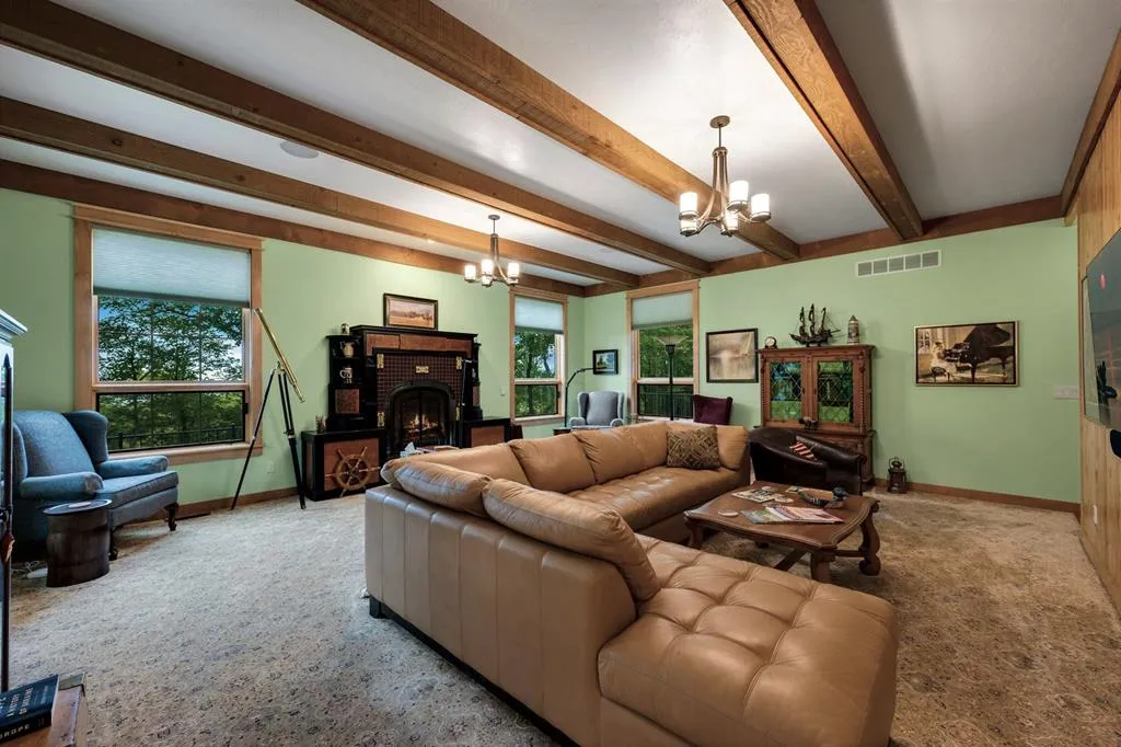 “Bluff Cottage” is a 4022 sq. ft. Craftsman style bungalow located on Greening Bluff with the Horseshoe Bay community. Sitting on the bluff 100 ft above the water it offers panoramic views of the sparkling waters of Green Bay by day and the lights of Marinette/Menomonie by night. The bright and cheerful interior offers 3 ensuite bedrooms each with full bath, knotty pine accent walls, architectural ceiling features, 2 antique gas log fireplaces and a lower-level game room. The exterior features 3 decks, one with hot tub and a lower-level patio with a firepit. Enjoy the wooded/professionally landscaped yard complete with yard artwork and traced lawn area. Hot tub, pool table and garden feature included in sale price.