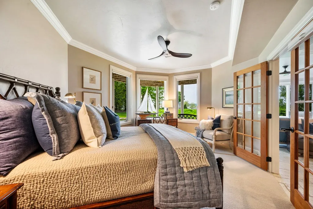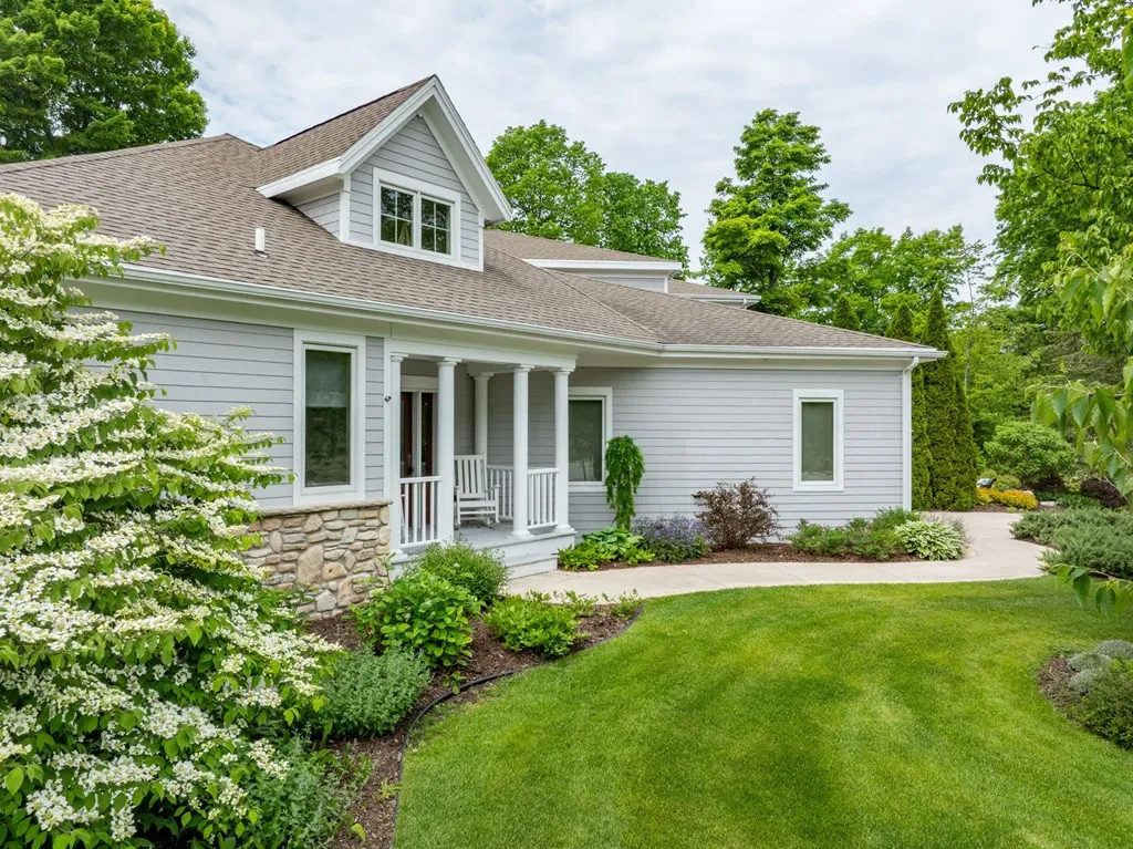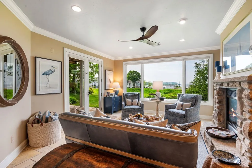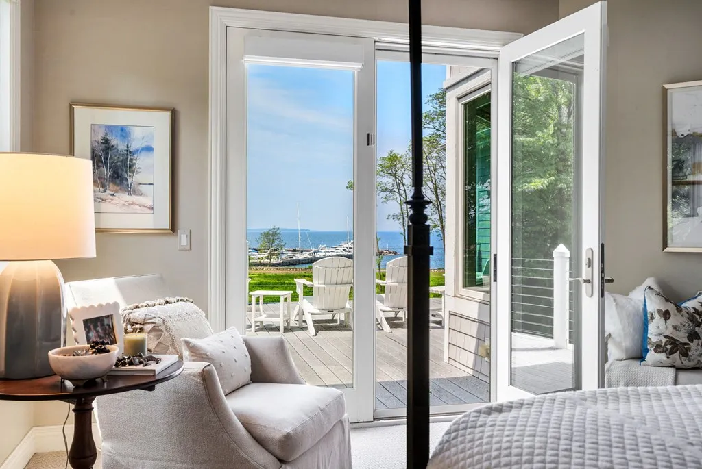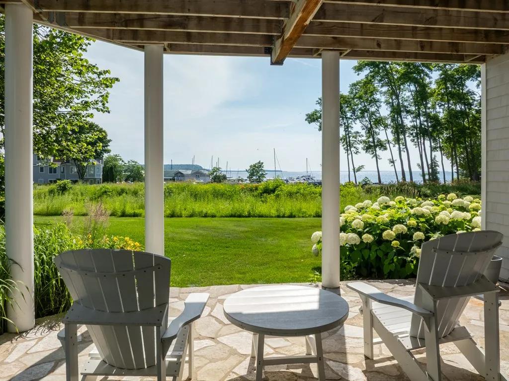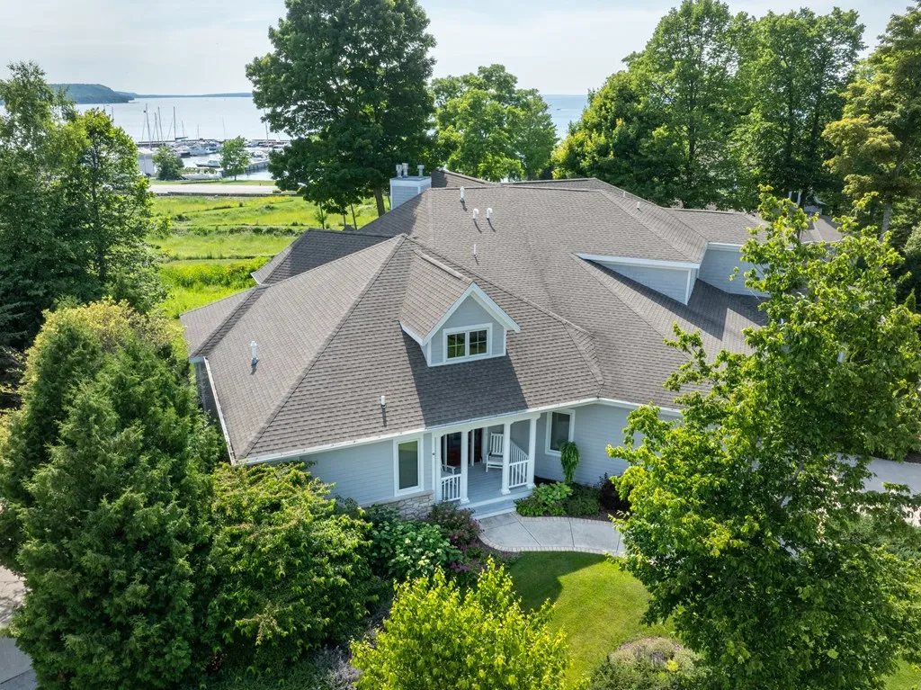 Located just north of downtown Sister Bay and adjacent to Yacht Works Marina, Yacht Harbor Shores provides stylish water view living. This thoughtfully remodeled and updated townhouse has dynamic westerly views of the Green Bay waters, marina, and acres of green space from its elevated vantage point. The spacious two story unit, offered tastefully and fully furnished, features unique ceiling angles, walls of windows, new high-end finishes, a main level primary suite with a luxurious bath, formal and informal living, two car attached garage, elevated deck and private flagstone terrace, among a long list of features. Walk to your boat or village activities from this first rate location, or stay in and enjoy a colorful sunset over the bay.
