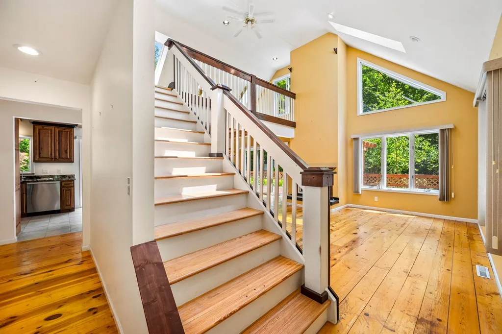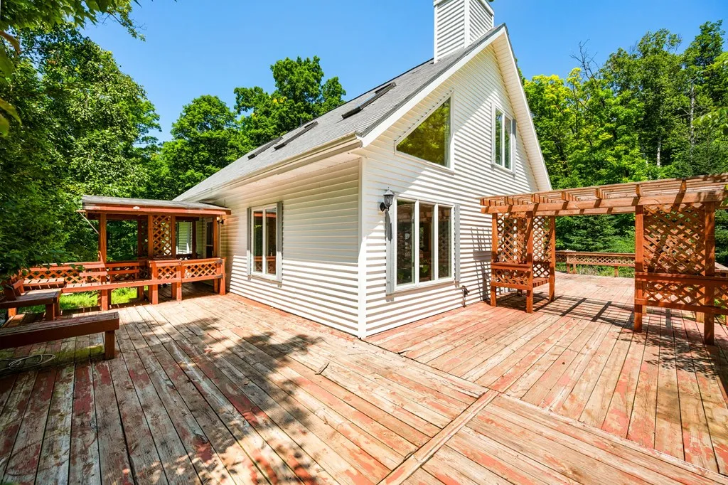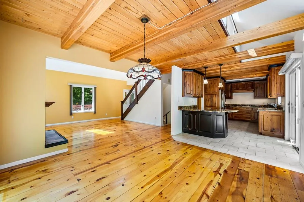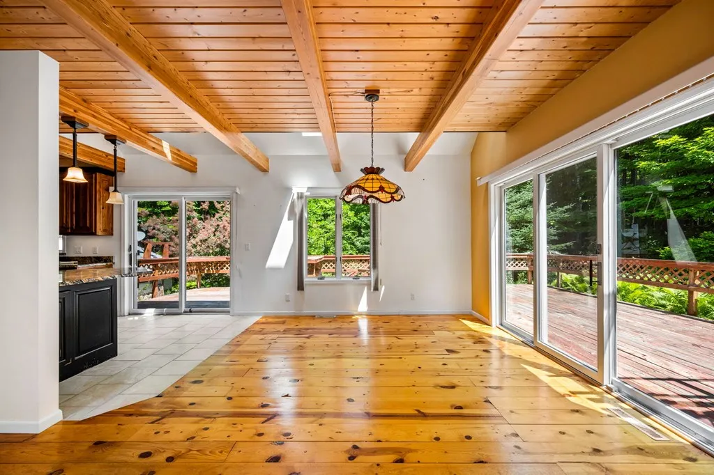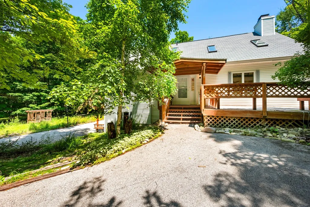 This beautiful wooded property located just minutes from Frank Murphy Park offers ample space inside and out. The stunning character of the beams and pine wood floors gives the home charm and ambience and large windows illuminate the space. With three beds and three full baths, this home is suitable for a lot of company. The garage is extra long and could accommodate many toys or room to work. It is being offered with an additional 1.51 acre lot.
