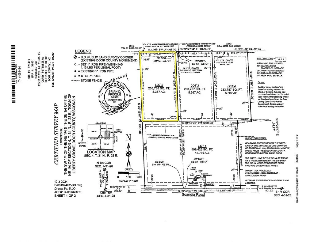 Create your perfect Door County retreat on this 5.367-acre wooded lot—an ideal canvas for your dream home or private getaway. A gravel drive is already in place, and a full survey has been completed, saving you time and effort. Enjoy the tranquility of a secluded setting while being just minutes from all the dining, shopping, and shorefront charm Sister Bay has to offer. Also offered are Lots 3 and 4, individually, under MLS #s 144395 and 144396. See MLS #144398 for all 3 Lots combined.