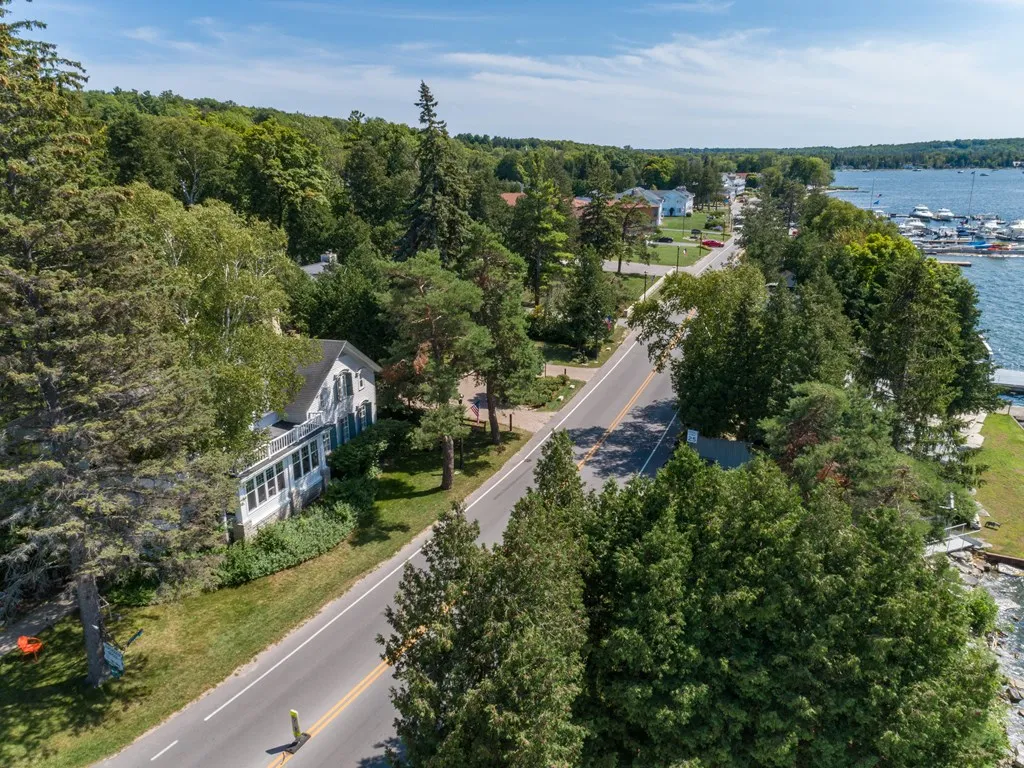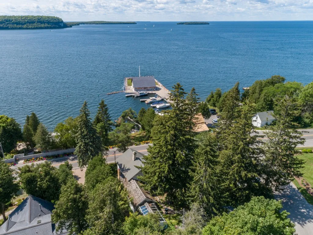 Historic Anderson House in Ephraim dates back to 1864. It was one of the first lodging establishments who welcomed visitors arriving on the steamships at the iconic Anderson Dock. This 18-room property is currently a combination of retail shop space (4 rooms) and a private residence (14 rooms). This is one of the oldest two-story log homes in Door County and built of Norwegian style square logs. The current retail store has operated here since 1970. The residence is now being used as a vacation rental. Beautiful, well cared for property. Wonderful courtyard with walkways through the gardens. Commercial zoning allows for a variety of uses. 3-car garage. 10 parking places. Wonderful, westerly water views! Also listed MLS #144407.