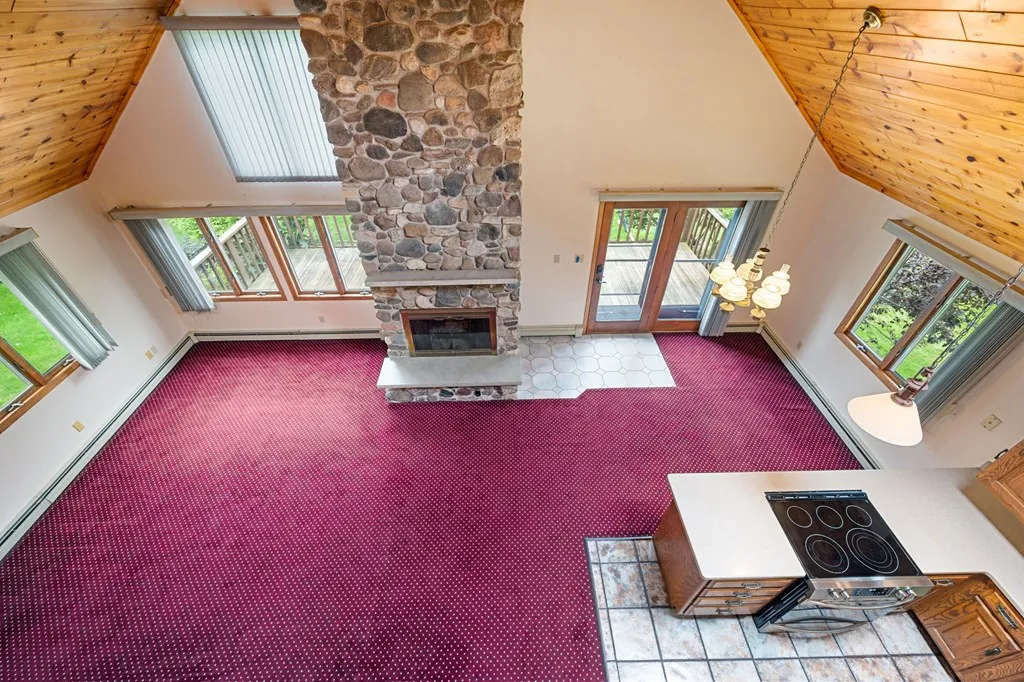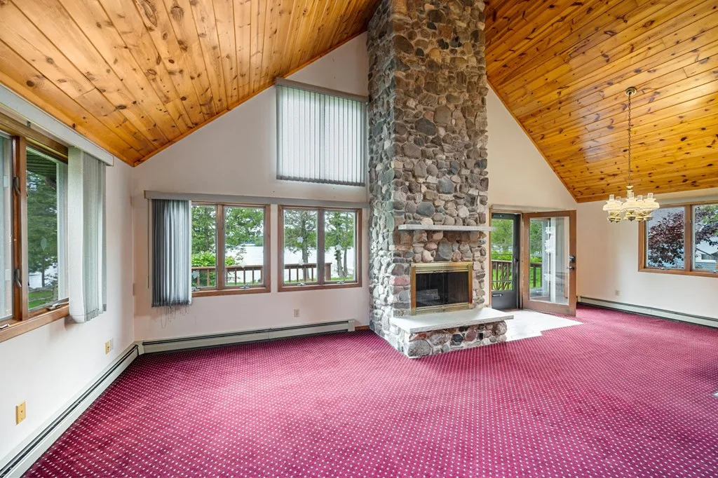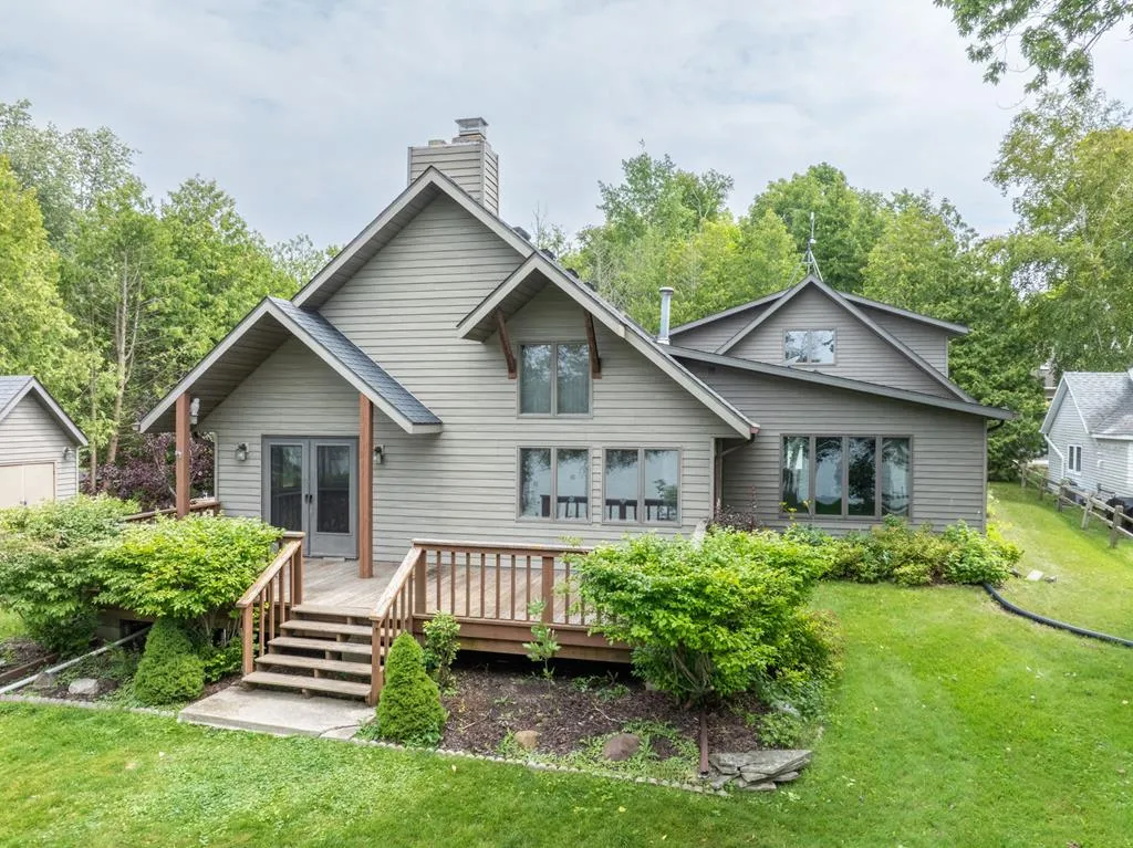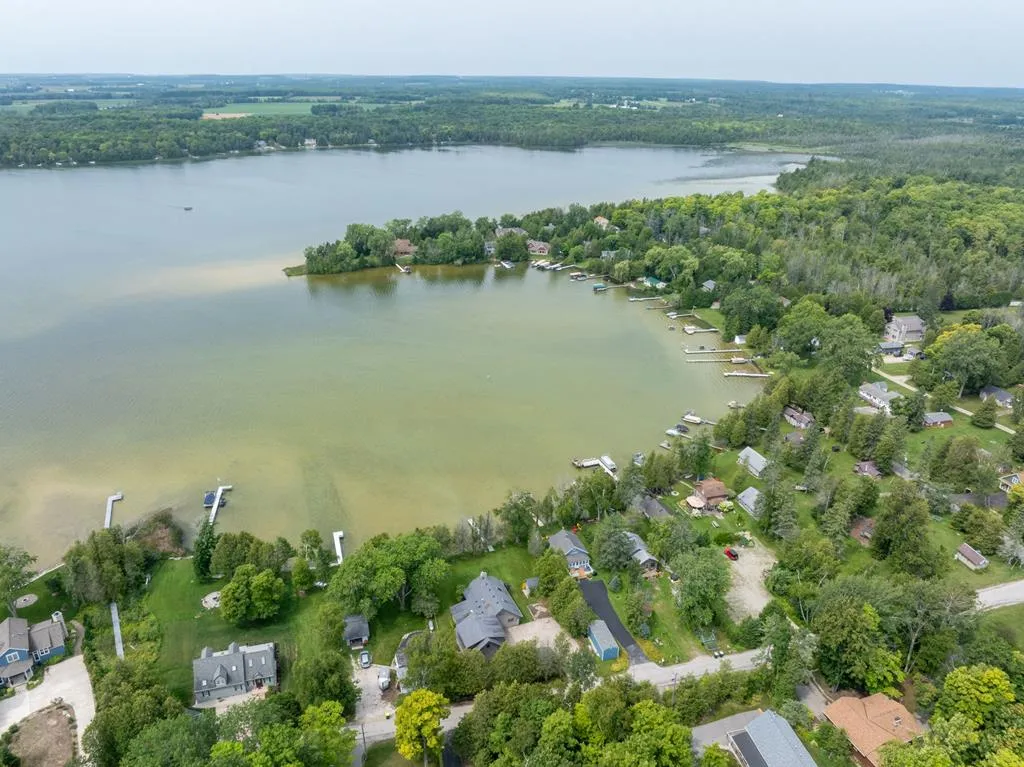 Clark Lake! This property was a part of a larger family compound at one point & has been enjoyed by the same family for decades. This 1 story year-round cottage was constructed in 1986 and features tongue & groove ceilings, an open concept main living area w/ a floor to ceiling stone fireplace in the great room, a cozy kitchen, a full bath, & 2 bedrooms. The upper loft area features a sleeping space with skylights, & a half bath. And above the 2+ car garage, there is a wonderful bonus room for sleeping, entertainment, crafts or storage. Walk out to the deck & enjoy the beautiful back yard and your private shorefront. The portable pier is included in the sale. Minutes to Schauer Park and Cave Point Park.