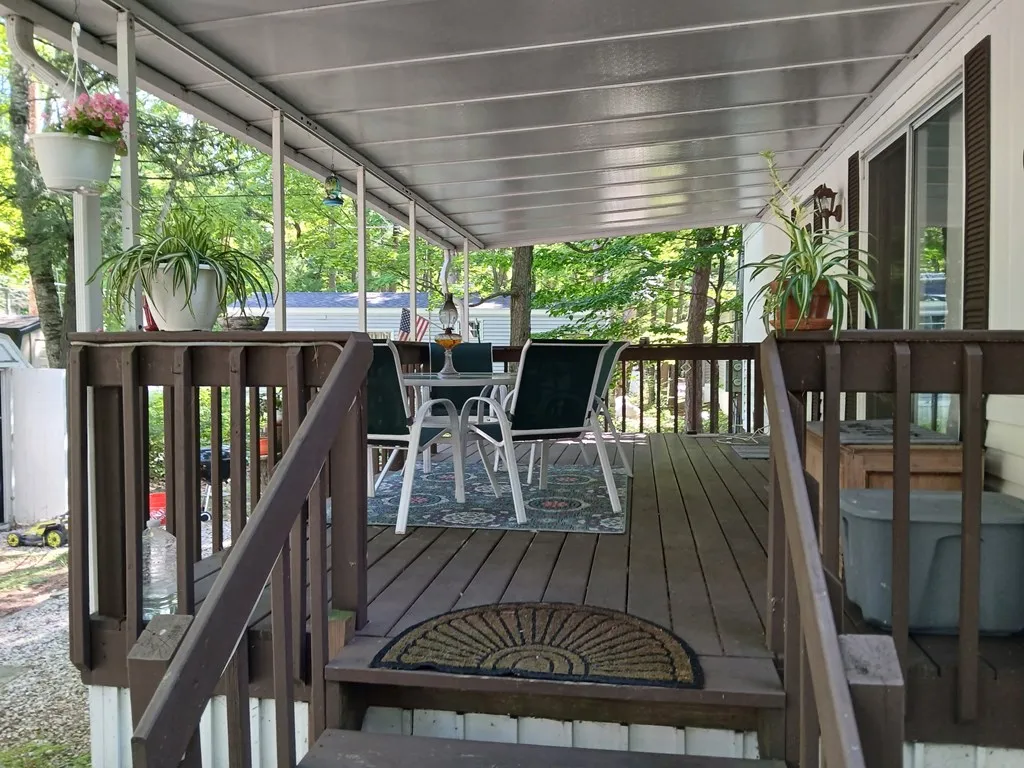 Hidden Ridge Resort offer this lovely 1 bedroom, 1 bath park model located on a corner lot. Large covered deck, shed for extra storage and a curved blacktop driveway for additional parking. The gated resort has a rec center with a indoor pool, whirlpool, laundry, kitchen and gathering area. New in 2022 – roof, refrigerator, carpet and vinyl. Perfect Door County get w way!