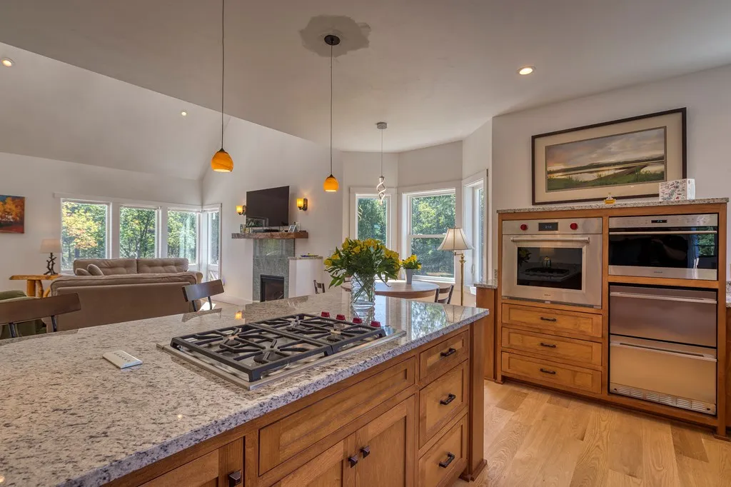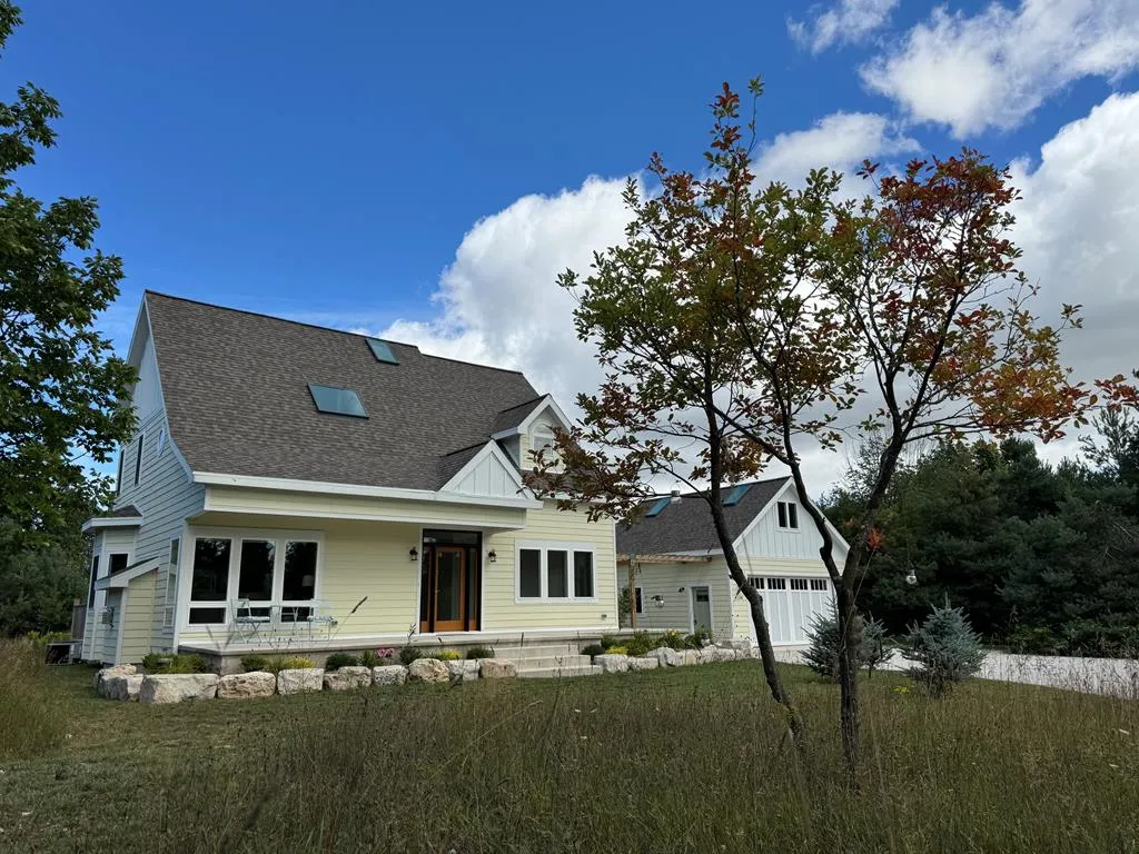 Make your Door County dreams come true! This beautiful, contemporary home is in like-new condition and ready for the new owner to move right in! Tons of windows flood the home with natural light and pretty views in every direction. Nine-foot ceilings on the 1st floor, 6 -inch solid red oak flooring, granite counters, maple cabinetry and Wolf appliances. There’s a first-floor den and bedroom, and two more ensuite bedrooms upstairs. Two gas fireplaces. Relax on the front porch or backyard deck. There’s an unfinished bonus room above the garage that is plumbed for a future bathroom – perfect for the artist studio, home gym / exercise room or office. The home has been lightly used and offered fully furnished. See it today!