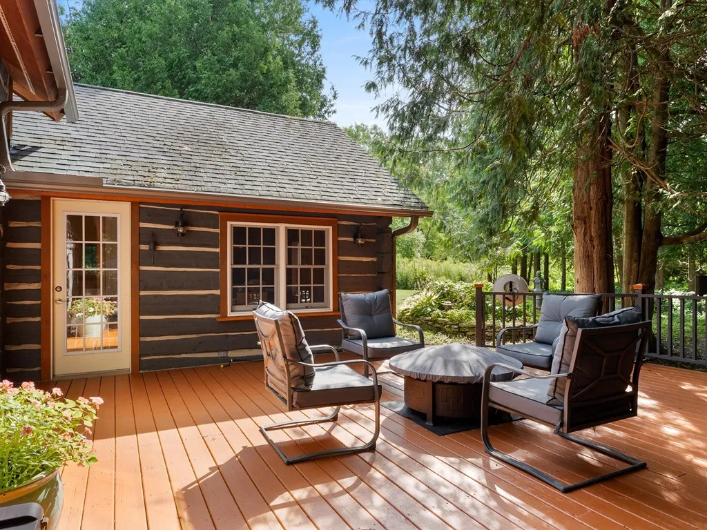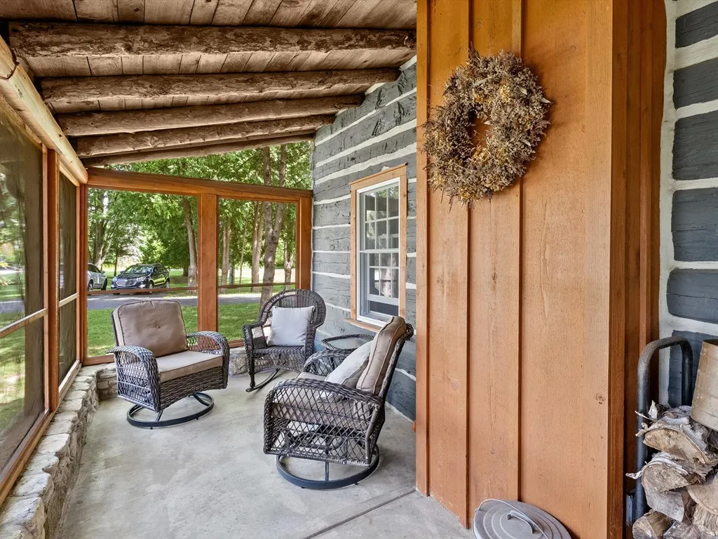 Built in 1854-55, this full-log home provides a natural coziness that only a log home offers. The surrounding wood walls emanate a natural warmth in color and composition. In 1910 an addition to the east side and a porch were added. First floor remodeled in 2004, all windows were replaced. Home totally re-chinked with Perma-Chink. Home is 1 1/2 stories, 2 bedrooms, 1 bath. Kitchen, dining area flow nicely to the living room and screened-in porch; large deck off dining area. Property is zoned residential and/or commercial. An accessory building, built in 1991, has 1363 sq ft including a loft area. Building offers numerous commercial possibilities! Property has a recorded pedestrian easement to Kangaroo Lake. Internet is Broadband.