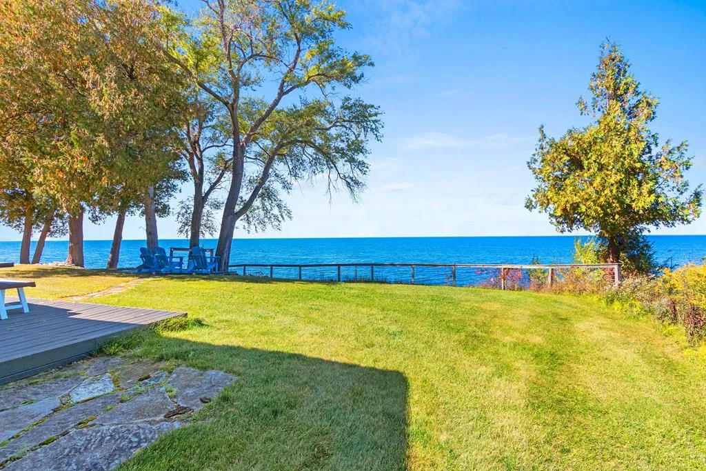 Waterfront summer cottage/condo retreat on the Bay! Completely renovated with quality craftsmanship in 2007 under a prior owner, this 2BR/1.5BA ranch-style condo blends charm, views, and quality. Hardwood floors, Pella windows/doors, custom cabinetry, built-ins, and stone gas fireplace. Open-concept living features cathedral ceiling, granite island, and stainless appliances. New washer/dryer. Propane forced air + A/C. Enjoy sunsets from inside or your Trex deck, evenings by the firepit, and 445′ of shared waterfront. Community amenities include pool, basketball courts, & green space. With low $1,500 HOA dues and income potential, this is a perfect second home or vacation rental.