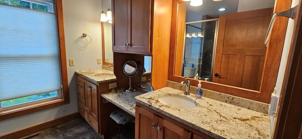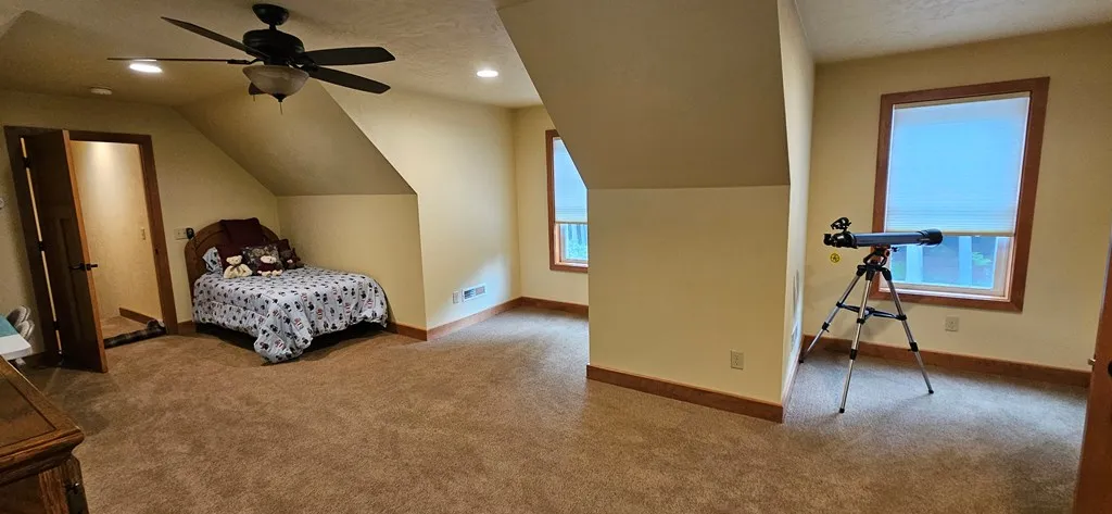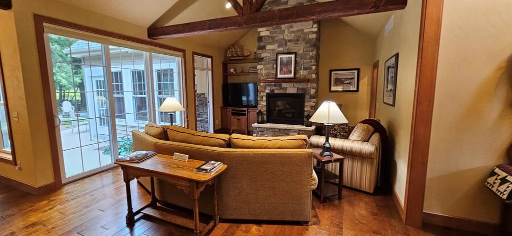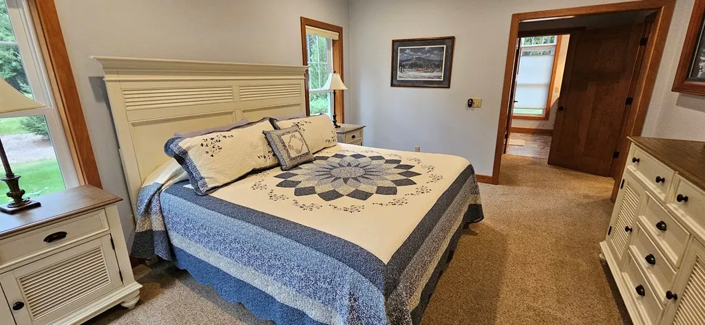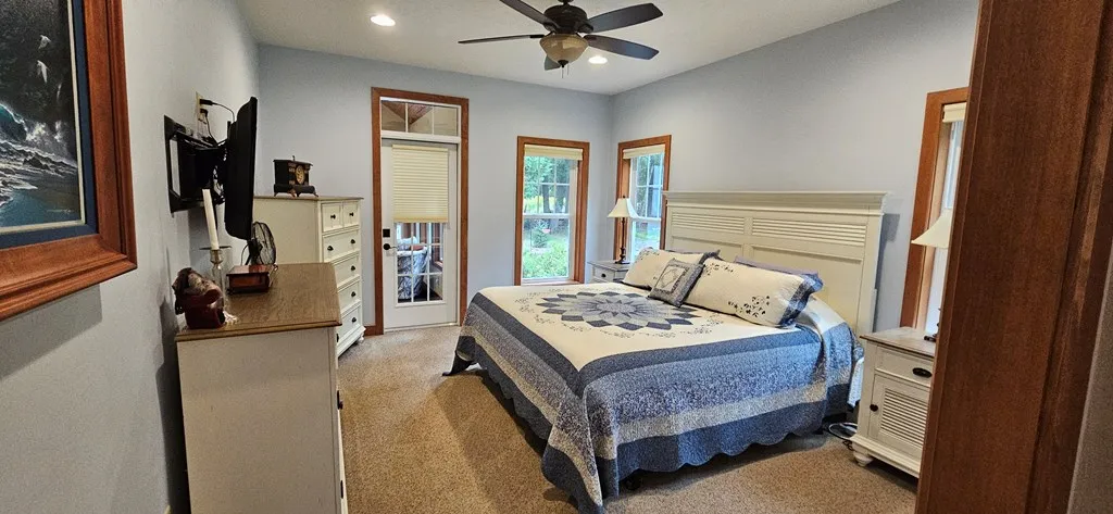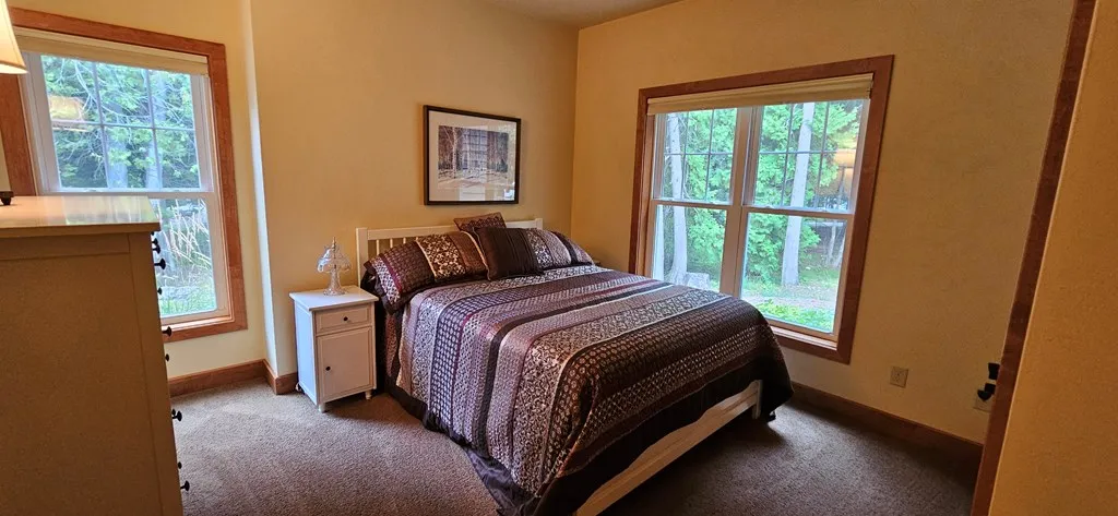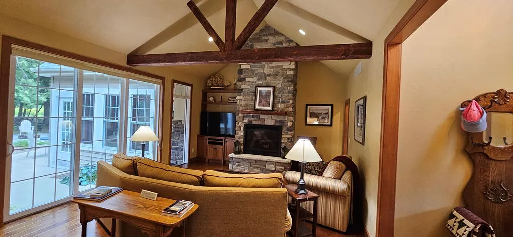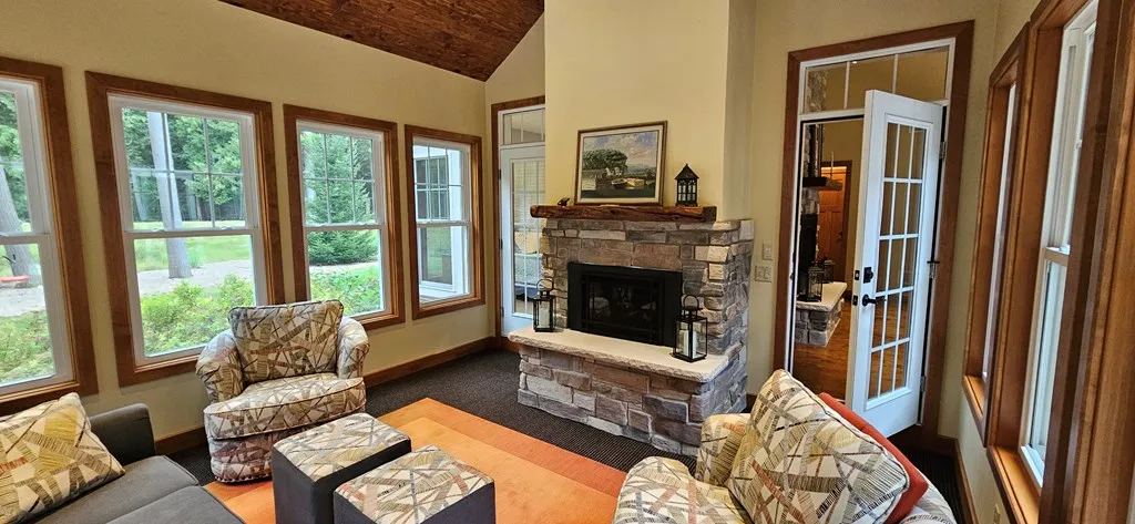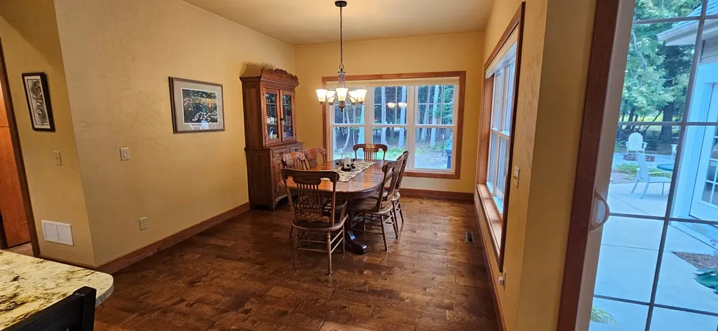 This home features vaulted ceilings, an open kitchen, a stone fireplace in the great room, and a cozy fireplace in the sunroom. It also includes a 3-car garage and a spacious upstairs bonus room. Outside, you will find a concrete patio, stone paths, a garden shed, a fire pit, and beautiful woods and landscaping. The Europe Lake boat launch is less than 400 feet away, and access to Newport State Park is at the end of the road.