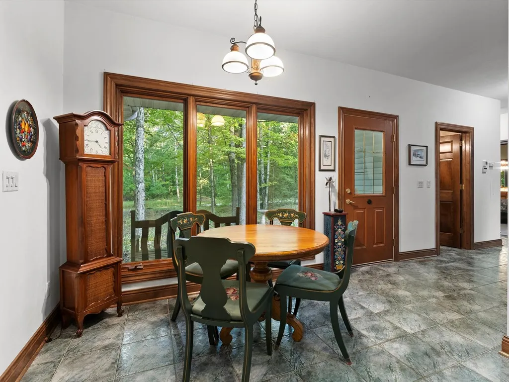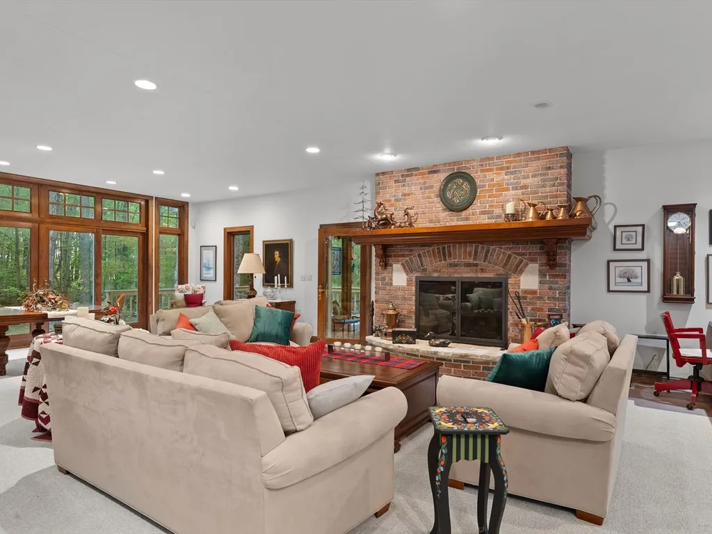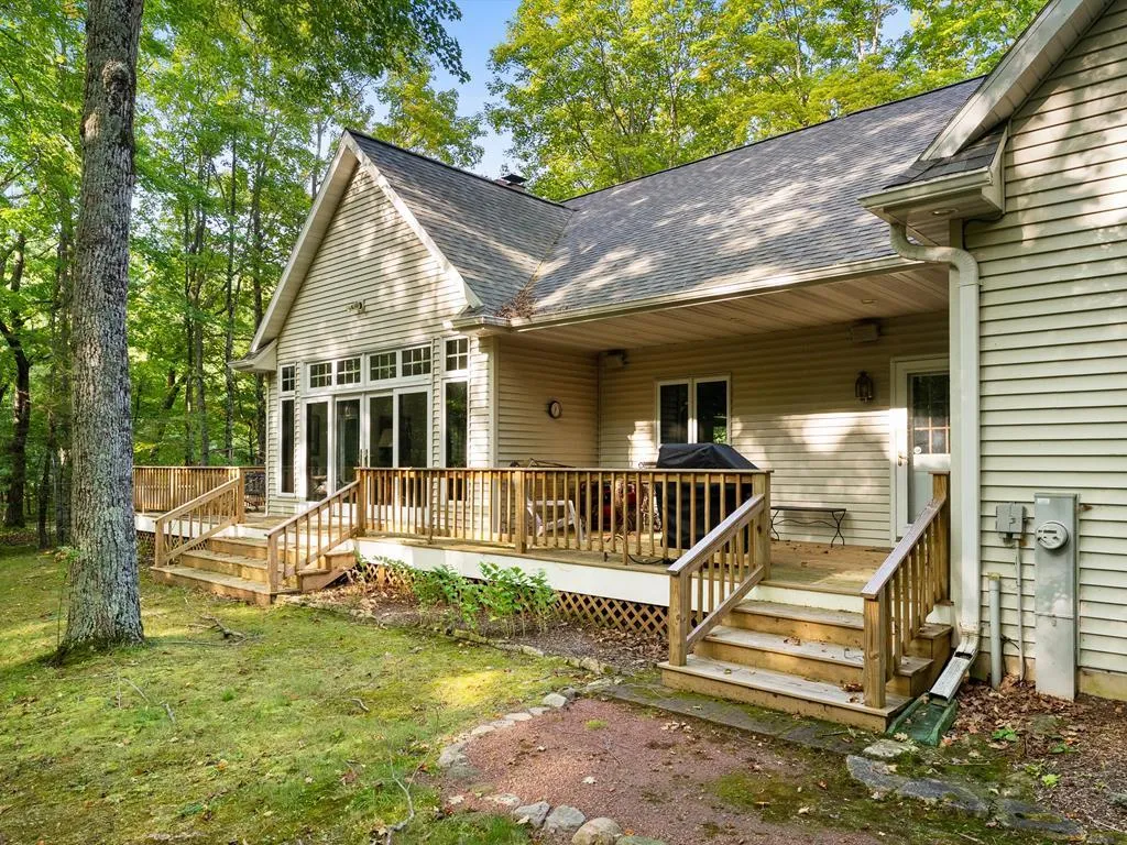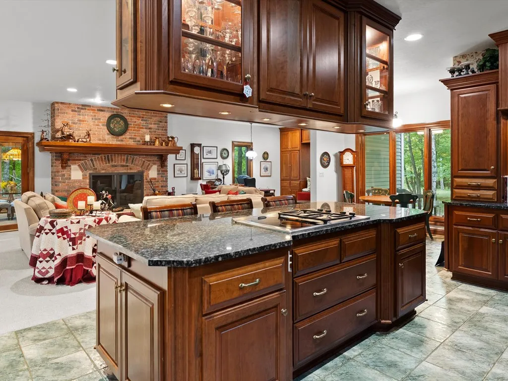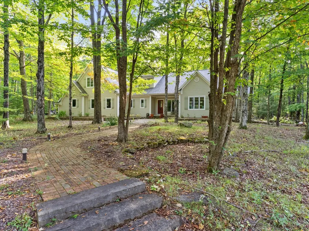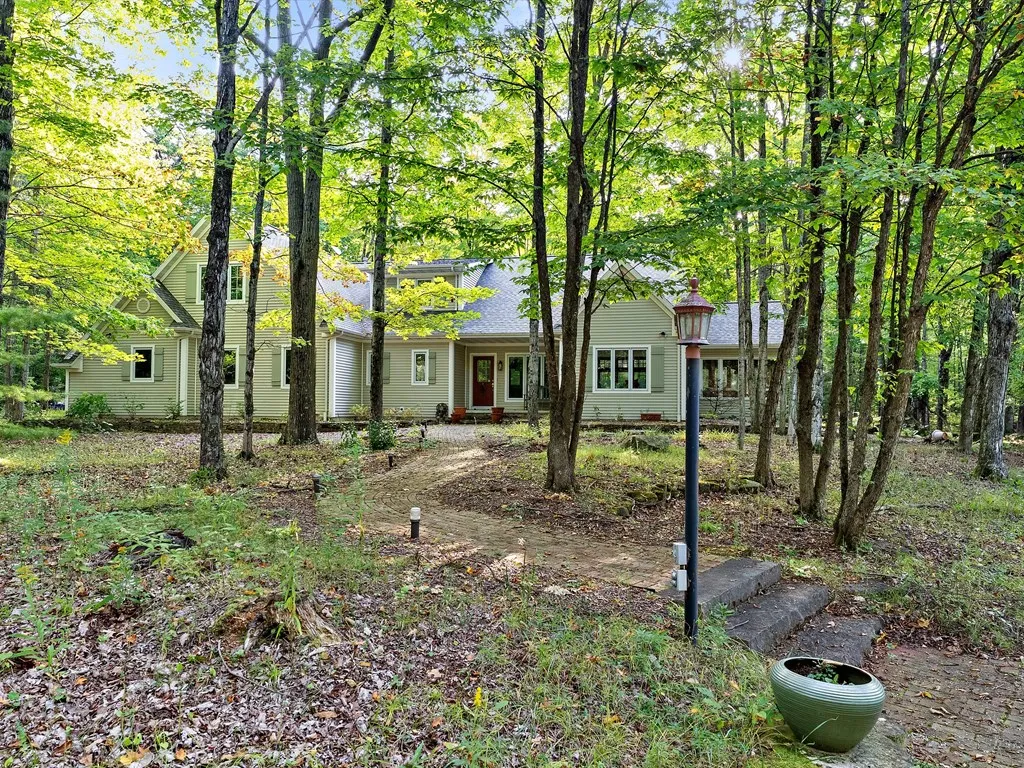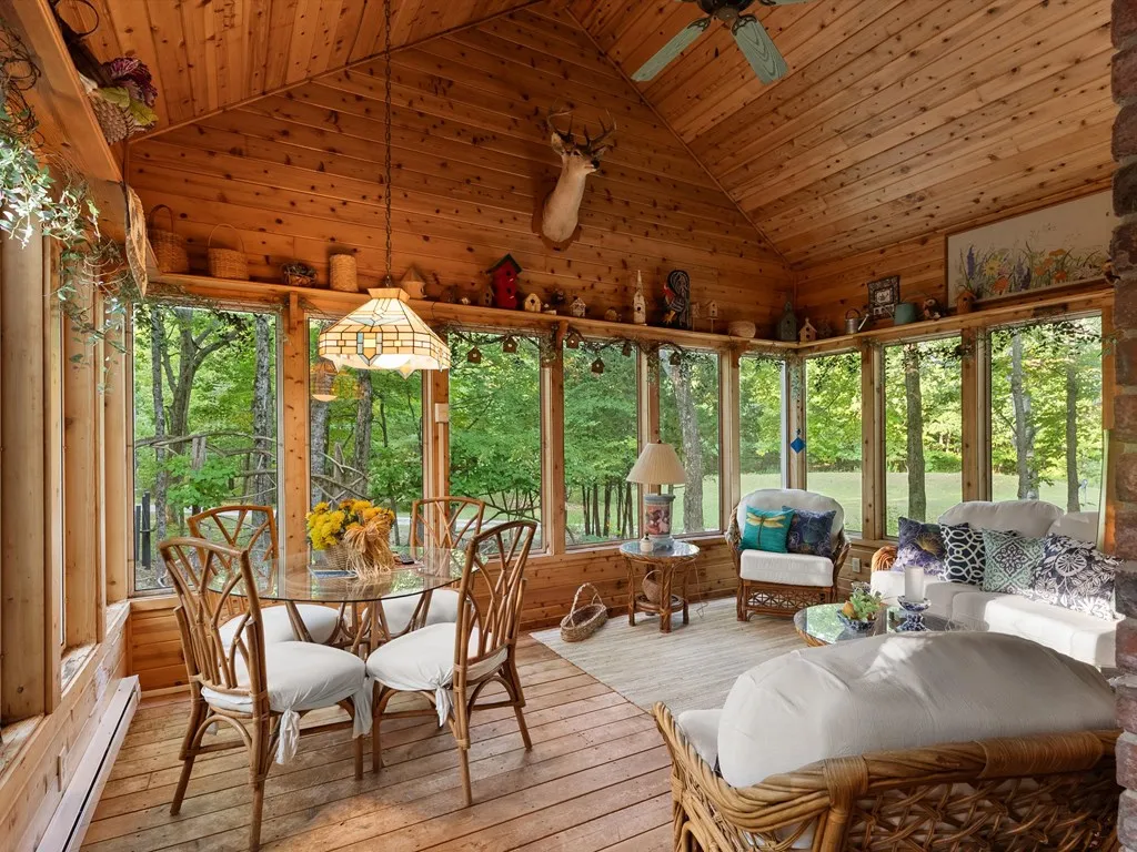 Custom built in 1998, this 4091 Sq. Ft. home rests on 14.95 wooded acres with timeless craftmanship and privacy. Featuring 2 bedrooms, 2.5 baths and cherry wood cabinetry with custom trim, the kitchen opens to a spacious living area with a brick gas FP and a sunroom filled with natural light and wooded views. Quality woodwork throughout and transom windows bring in the wooded views. A studio with skylights and a workshop add versatile space for hobbies or projects. With its warm design and serene setting, this home is perfect for entertaining or quiet retreat.