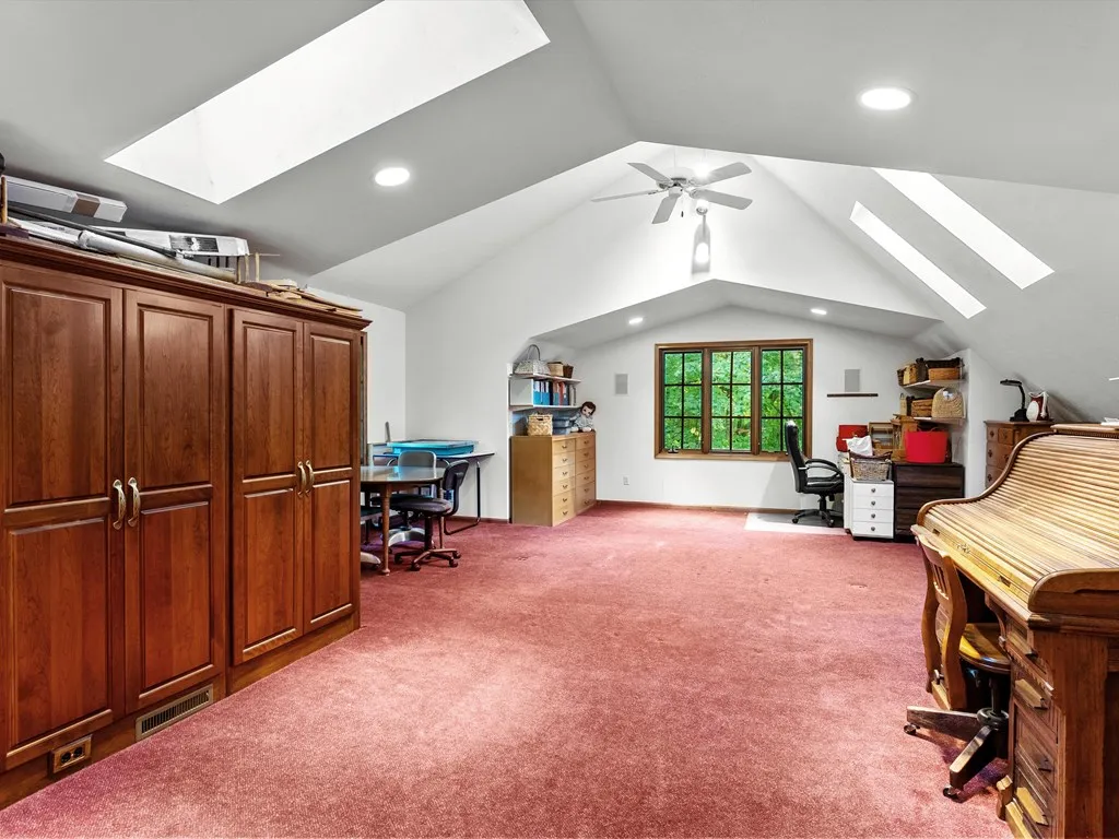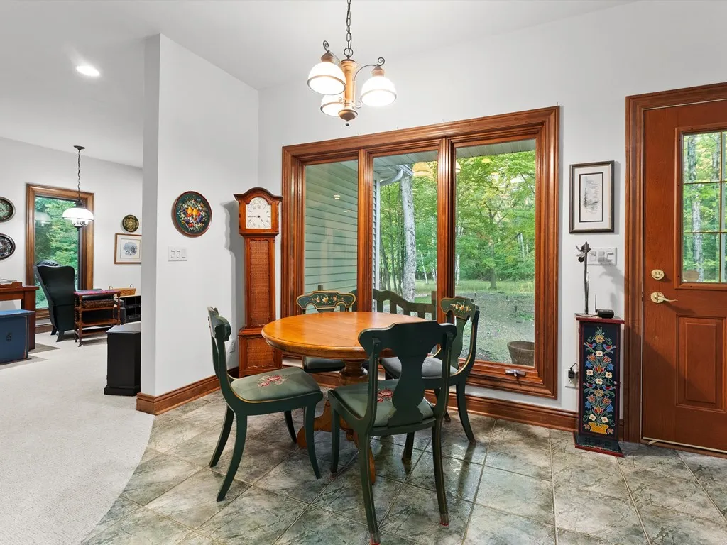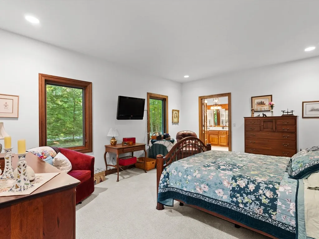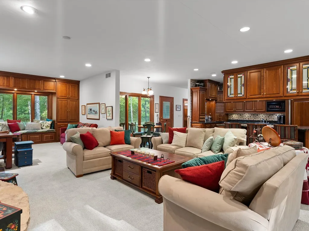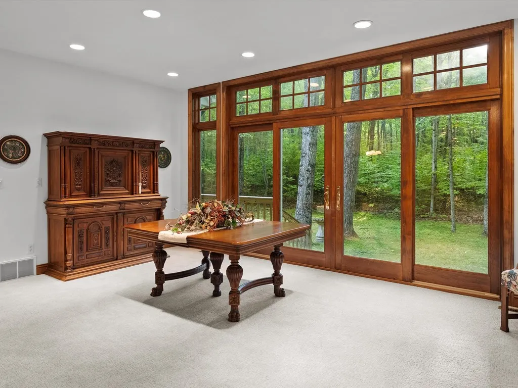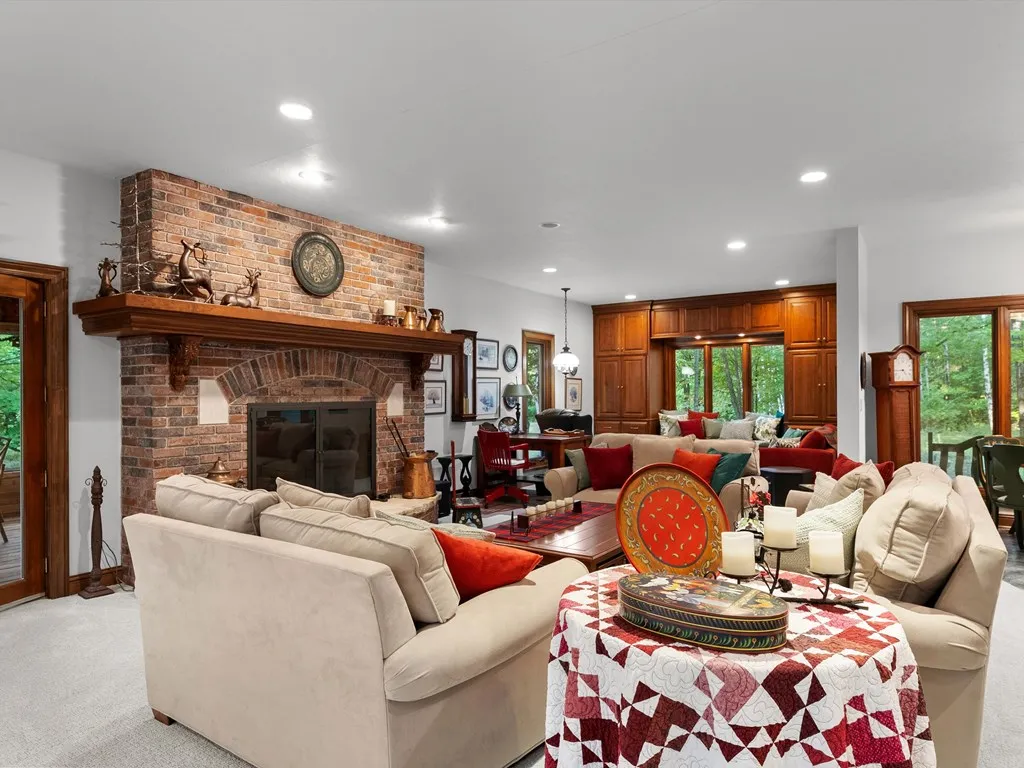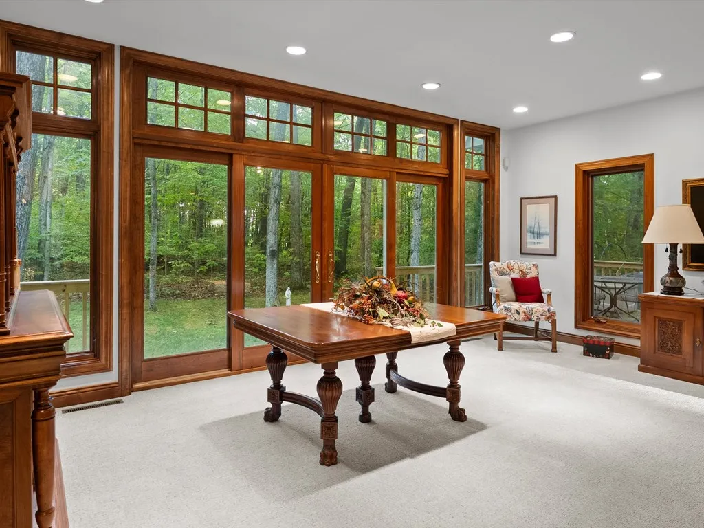 Custom built in 1998, this 4091 Sq. Ft. home rests on 14.95 wooded acres with timeless craftmanship and privacy. Featuring 2 bedrooms, 2.5 baths and cherry wood cabinetry with custom trim, the kitchen opens to a spacious living area with a brick gas FP and a sunroom filled with natural light and wooded views. Quality woodwork throughout and transom windows bring in the wooded views. A studio with skylights and a workshop add versatile space for hobbies or projects. With its warm design and serene setting, this home is perfect for entertaining or quiet retreat.