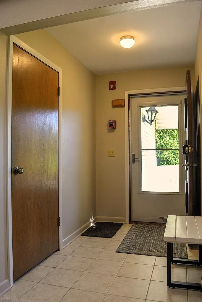 Situated on a lovely two acre parcel, Ridge View Manor offers proximity to both Sister Bay and Ephraim activities and restaurants, as well as the Pebble Beach shorefront park. This first-floor end unit features vaulted ceilings, a native stone fireplace, wood floors, and deck overlooking the meadows of the now-retired Bay Ridge Golf Course. Recent updates include new carpet, interior paint, many updated bath fixtures (including a barrier free shower), wi fi thermostats, new ceiling fans and light fixtures, storm door and more. The fireplace was re-lined and new cap installed. The offering includes a detached garage and high-speed internet included in the dues. Please note, no pets are permitted, and unit owners may not rent their units.