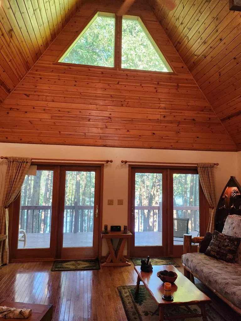 Escape to your private retreat in Southern Door County! This cedar A-frame sits on 5+ wooded acres with 300′ of frontage and a dock on scenic Mill Pond (flows into the Ahnapee River, famous for its salmon run). Inside: cathedral ceilings, hardwood floors, stone fireplace, stainless appliances, open-concept kitchen, 2 full baths, LL bath has exposed ceiling, and a loft master overlooking the great room. Sleeps 6 w/ sofa/queen sleeper & futon. Walk-out basement with fireplace & patio doors is ready to finish into extra bedrooms or a family/game room. Newer roof, expansive deck, abundant wildlife, great fishing, boating & kayaking right out your door. Minutes from Door County shops, orchards, parks & beaches-private yet close to everything
