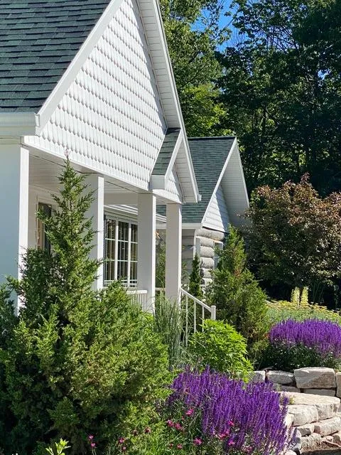 Remodeled in 2022-23, and brilliantly designed as a duplex for two rentals or as a single family home with attached in-law apartment. Annual rental income $100k. Perfectly located between Ephraim and Sister Bay, surrounded by new perennial gardens, professionally created, and fully irrigated. A rare, prime piece of property with breathtaking vaulted full-log structure; open plan & fireplace on the north end, and spacious light-filled vaulted home to the south. New kitchens, baths, and roof, poured foundation, with covered porch and a raised deck. Move-in ready, one-of-a-kind, remodeled to perfection. Located in trendy North Ephraim across from Smithsonian-listed gardens. This absolutely beautiful restoration is exceptional and valuable.