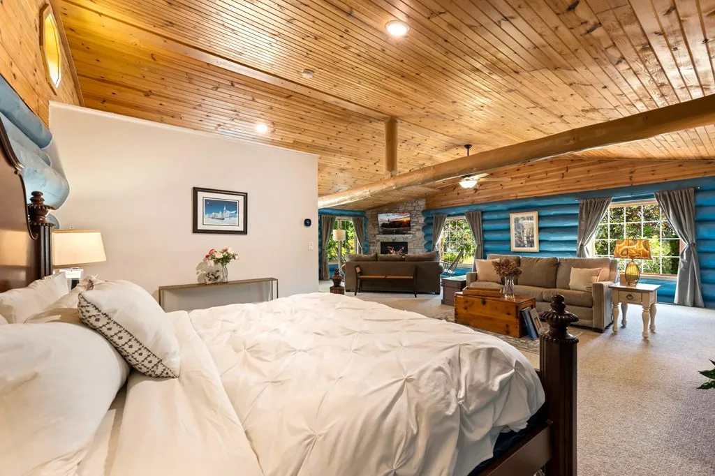 Remodeled in 2022-23, and brilliantly designed as a duplex for two rentals or as a single family home with attached in-law apartment. Annual rental income $100k. Perfectly located between Ephraim and Sister Bay, surrounded by new perennial gardens, professionally created, and fully irrigated. A rare, prime piece of property with breathtaking vaulted full-log structure; open plan & fireplace on the north end, and spacious light-filled vaulted home to the south. New kitchens, baths, and roof, poured foundation, with covered porch and a raised deck. Move-in ready, one-of-a-kind, remodeled to perfection. Located in trendy North Ephraim across from Smithsonian-listed gardens. This absolutely beautiful restoration is exceptional and valuable.