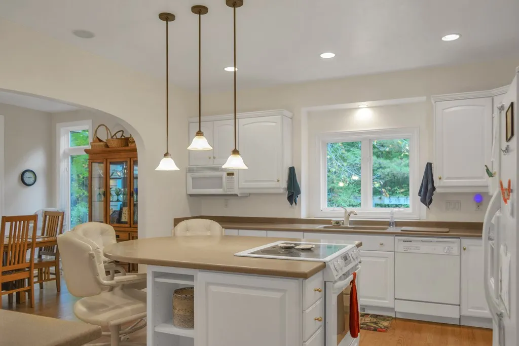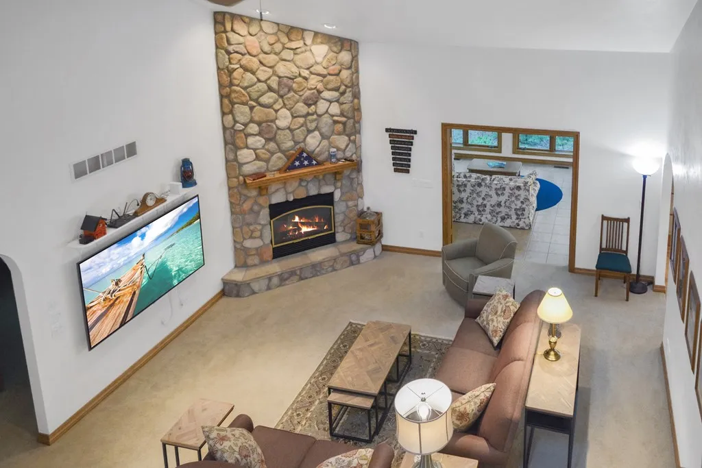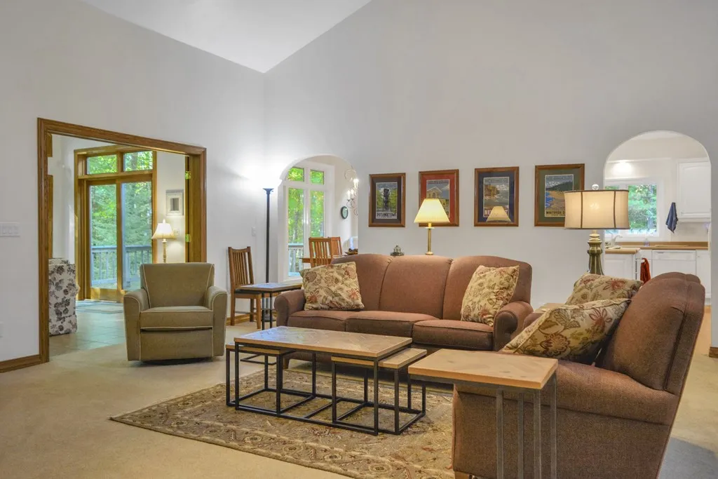 Ideally located within easy walking distance of Fish Creek, this thoughtfully designed, custom-built, and well-maintained home has to be seen to be appreciated. You will love the layout: first floor main bedroom with updated bathroom, spacious living areas, an open concept kitchen and dining room. The living room has soaring ceilings and a corner stone fireplace, and a family room with a wall of windows. Hardwood floors and doors, solid surface countertops, and Merillat kitchen cabinetry. Two decks, three-car attached garage with extended bay. Incredibly private but just minutes from downtown Fish Creek. Great location!