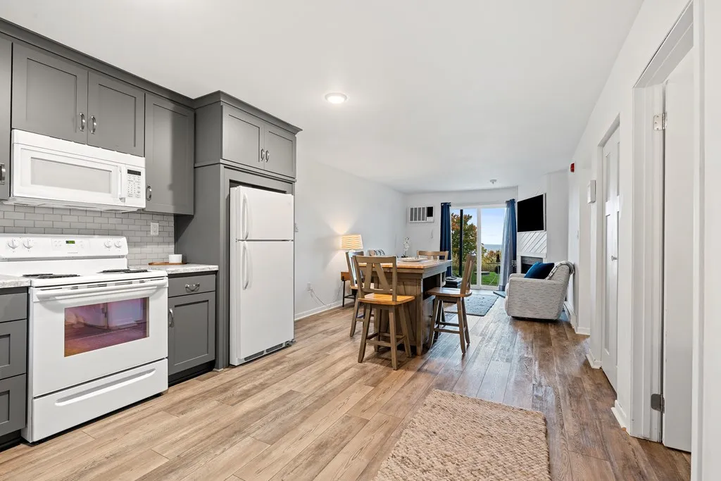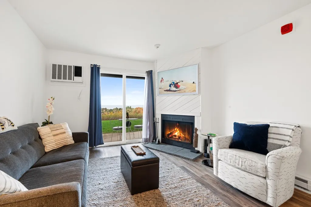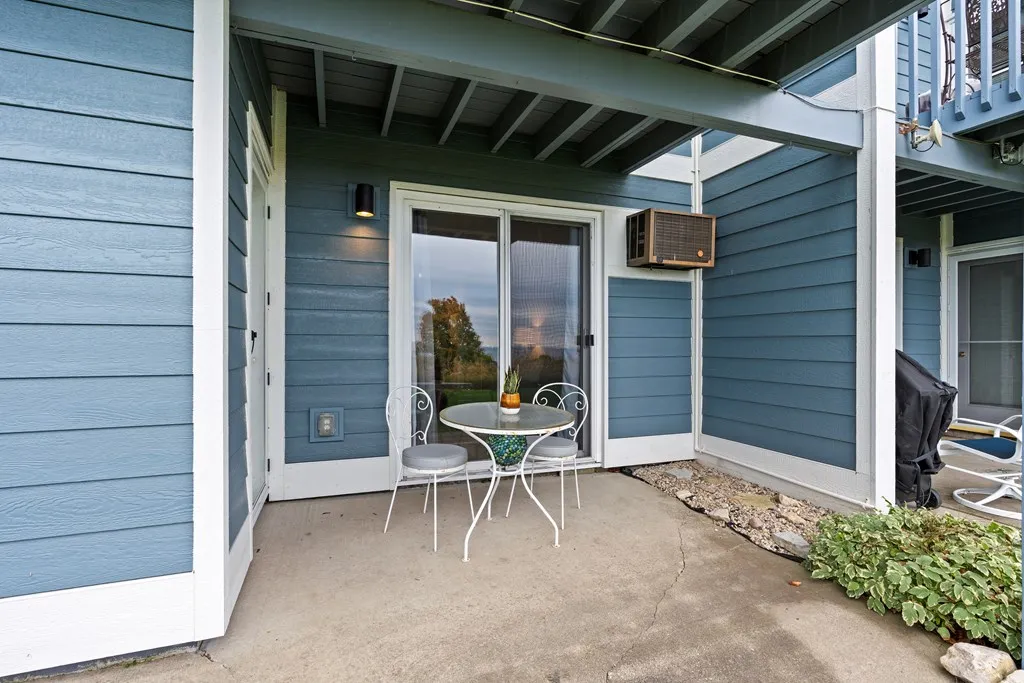 Welcome to BeeThree! Start your day with breathtaking views of Green Bay from this updated retreat. With water views from nearly every room and a clean, modern aesthetic, there is no better place to be. This turnkey unit offers an open-concept layout, updated kitchen cabinetry, and new flooring throughout. Key features include a cozy wood-burning fireplace and a covered patio, where you can relax and watch the sun set over the bay. At Sunrise Ridge, you will enjoy amenities such as walking paths, a pool, a pickleball court, and meticulously maintained grounds, all just minutes from the public beach and downtown Egg Harbor. Call today for details.