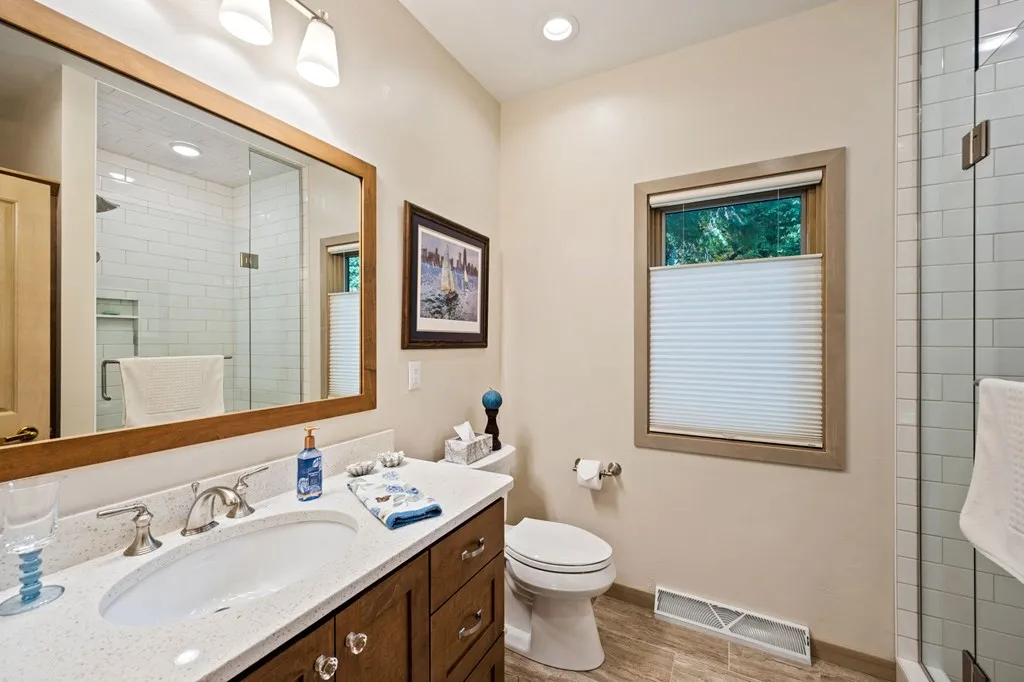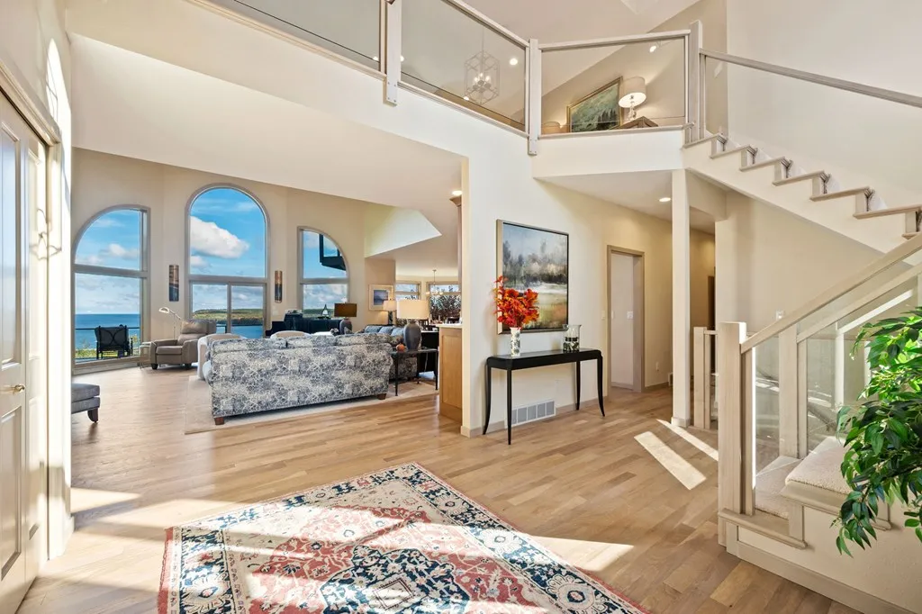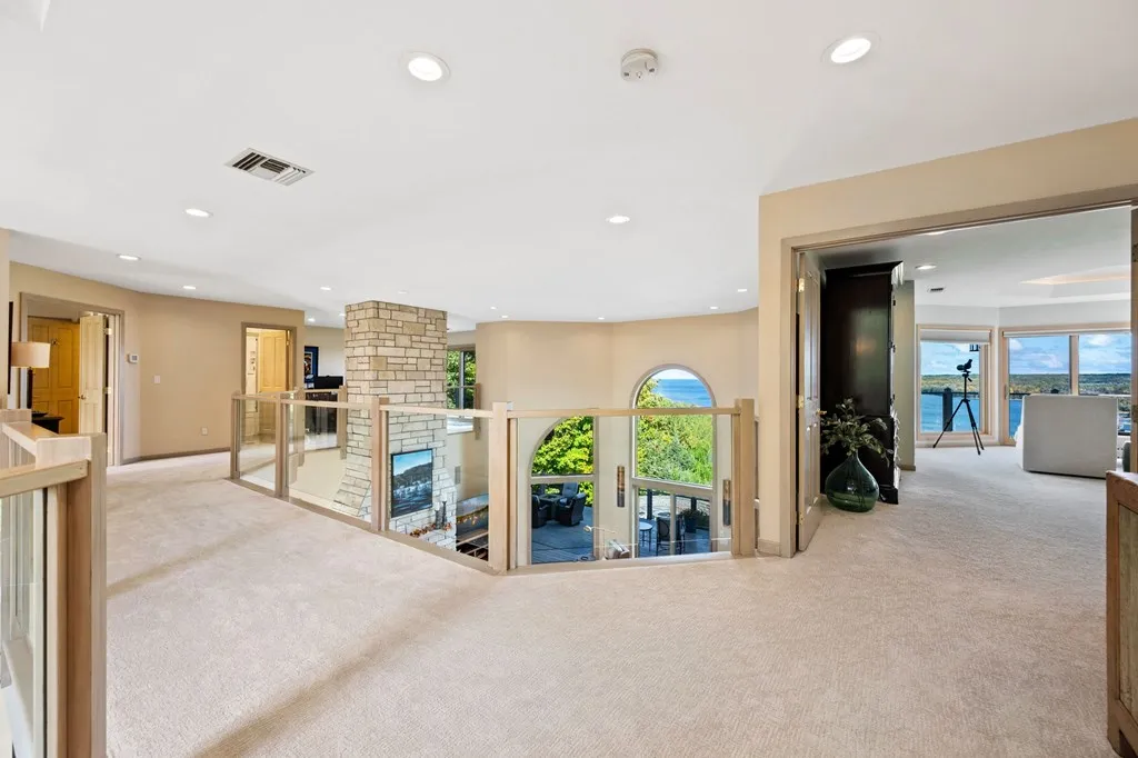 Spectacular views of the Fish Creek harbor, Green Bay waters, and Peninsula State Park highlight this 4,800 square foot, recently updated custom home. Designed for entertaining, it features a spacious great room with fireplace, open to modern well-appointed kitchen. The expansive deck is ideal for large gatherings or a quiet relaxing evening enjoying the amazing views. A stone walkway leads to a private firepit area. The heated garage is almost 1,500 square feet, ample room to fit four vehicles. Moments to all downtown Fish Creek activities.
