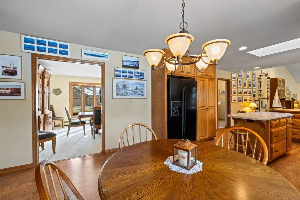 Find your dream home in Sturgeon Bay near the Bay! Discover the perfect blend of comfort and convenience in this attractive 4-bedroom, 2.5 bath ranch home which offers an inviting atmosphere, ideal for both family living and entertaining. Home features foyer with ceramic tile floor, a large great room with vaulted ceiling, skylights, a wall of windows overlooking backyard, gas-log FP, surround-sound, and area for game or dining table. Kitchen has a breakfast bar, island, pantry, oak cabinetry, sliding glass door leading to deck and patio. There is a formal dining rm and a primary ensuite bedrm. Office is located off single garage. Two-car garage is heated & has polyurea floor coating. Please put this home on your “must-see list.”