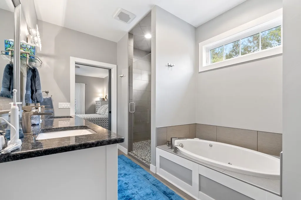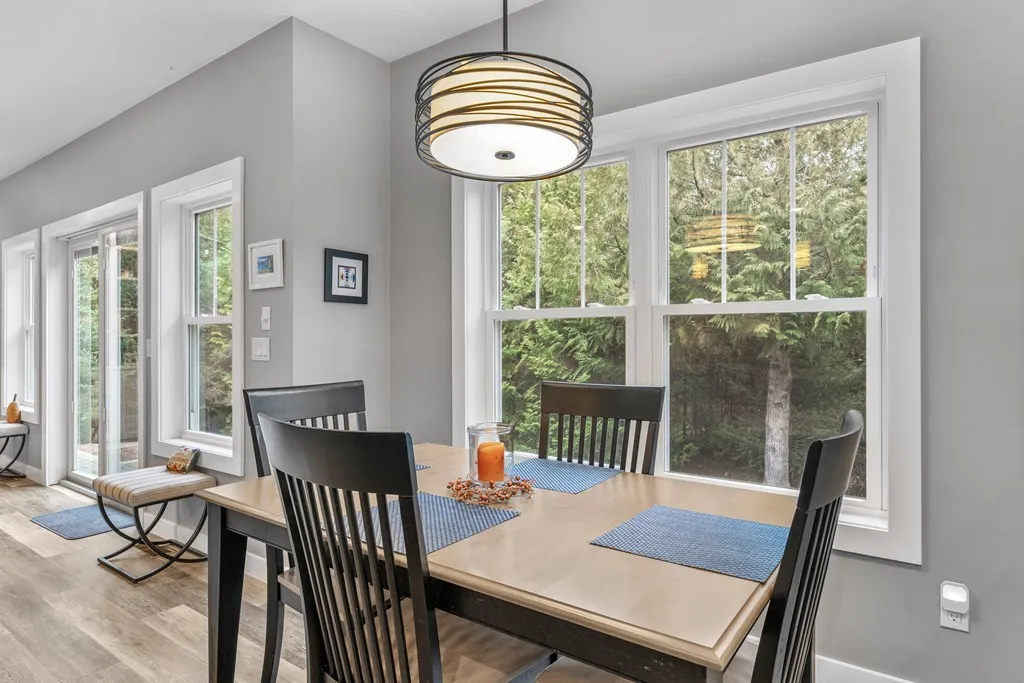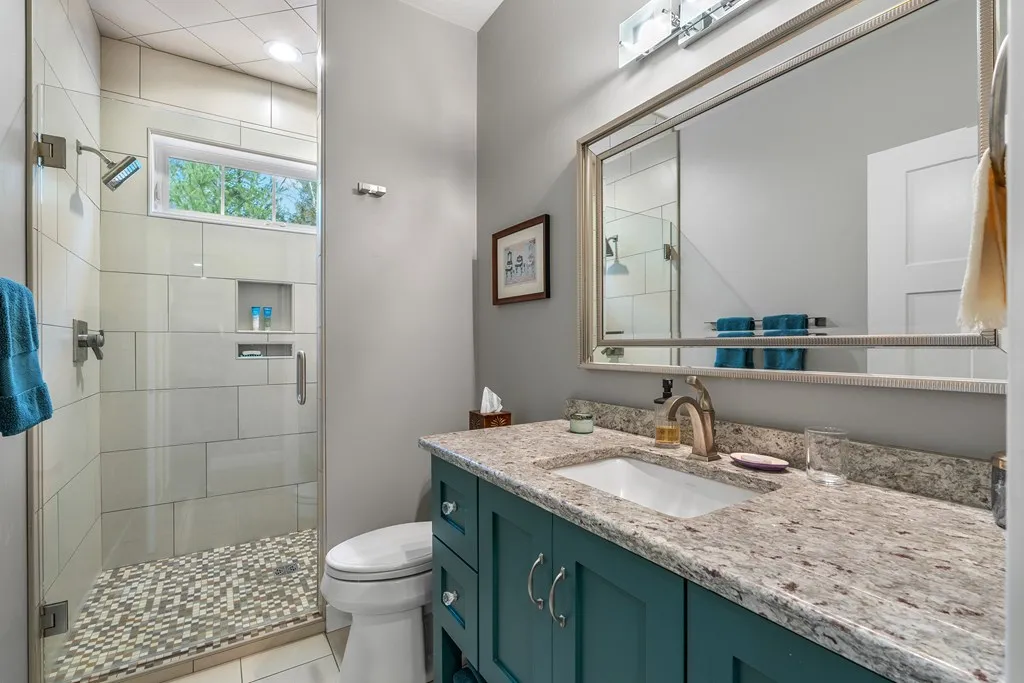 Well designed, custom home built in 2017 just steps away from Fish Creek. Situated at the end of a cul-de-sac, this property offers privacy with the convenience of walking to Fish Creek’s countless activities. Equipped with public sewer, cable internet, & a low maintenance yard. Offering a first floor ensuite with walk-in closet, soaking tub & shower. Built-in cabinets surrounding the living room room fireplace with sliding doors opening to an outdoor patio and path to outdoor fireplace. Two guest rooms, a guest bath & a den/dining area complete the first floor. Second floor offers the 4th bedroom, full bath & large bonus room completed with a wine closet. Oversized 2 car garage with ample storage solutions provide the finishing touches!