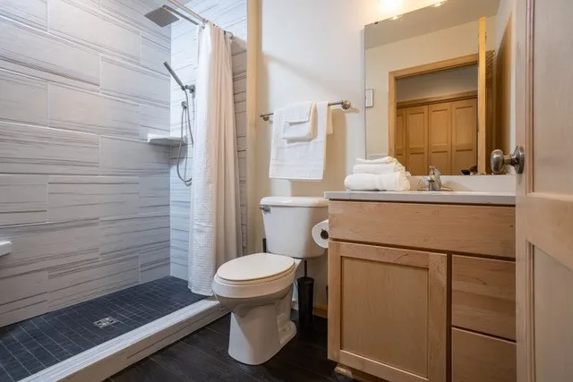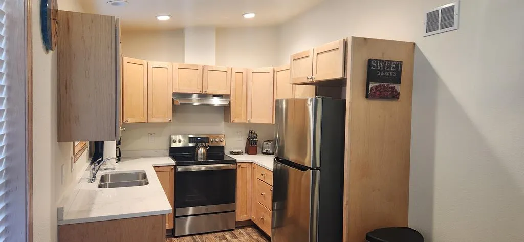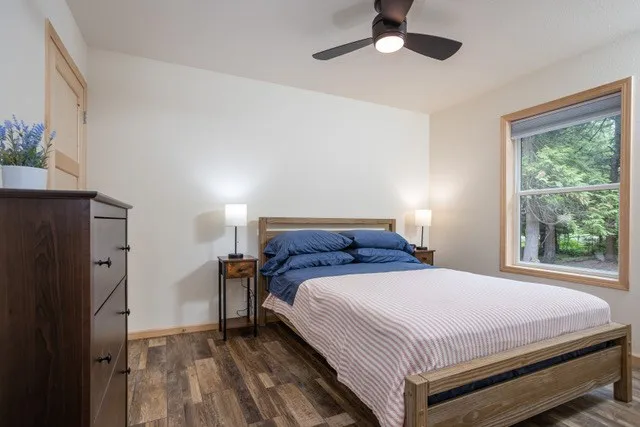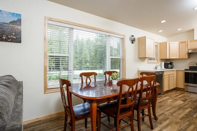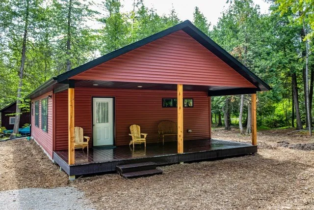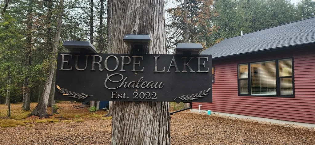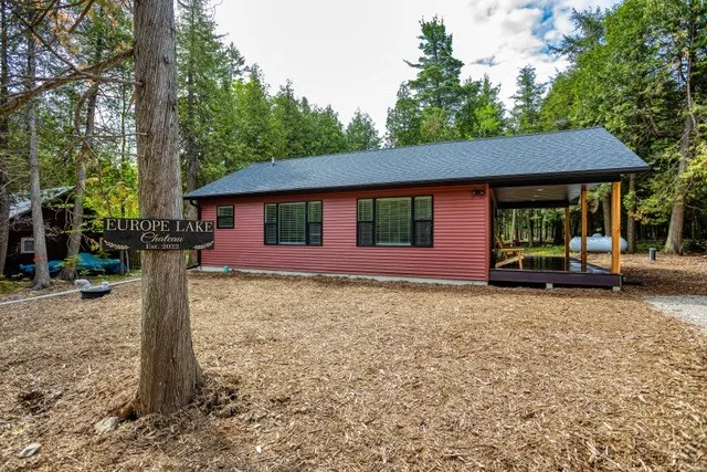 Nestled in the woods, just footsteps from Europe Lake. This delightful 2 bedroom 1 bath cottage has a welcoming covered porch, spacious living room, dining area and U-shaped kitchen. There is luxury vinyl flooring throughout, plenty of storage, and large windows to let in the sunshine. Built in 2022, everything is like-new, including the furnishings. This could be your own vacation or year-round home, or use it as a short-term rental. Liberty Grove Park and the boat launch are just down the road, at the end of Europe Lake Road.