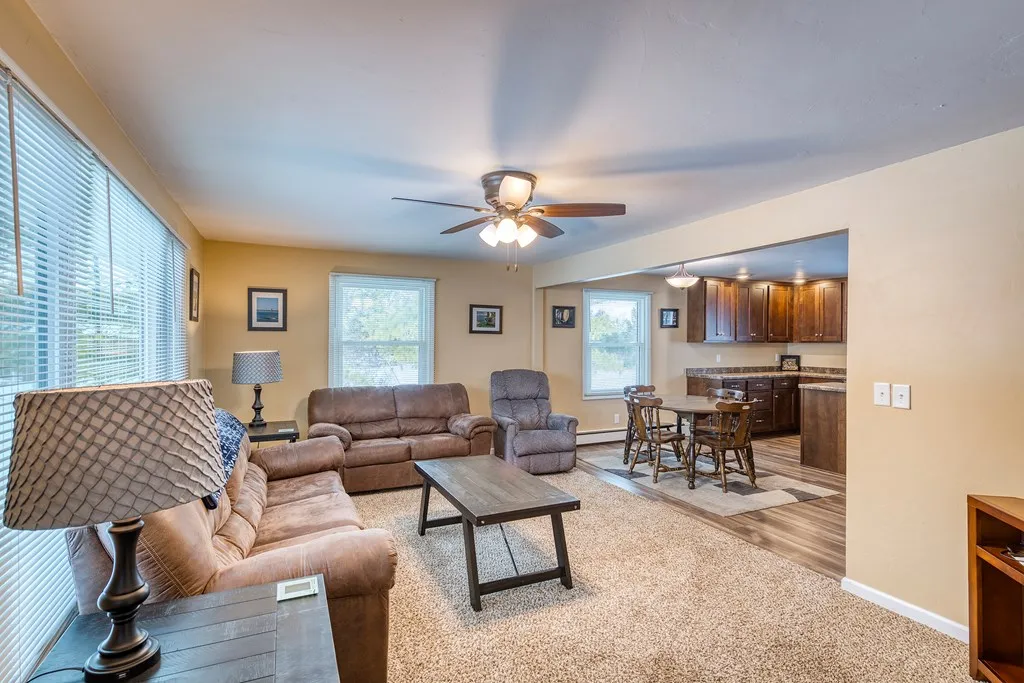 Welcome to this comfortable 3 bedroom, 1.5 bath ranch home, which has been lovingly remodeled and updated with fresh paint, new flooring, appliances, cabinets and siding, to name a few. Separate office/den. Large unfinished breezeway & full basement offer great potential. Huge attached 3 stall garage plus additional storage room. Currently used as a successful vacation rental, this home is well maintained and move-in ready (includes all furniture), but would also make a great primary residence or second home. Come and see the charm this lovely ranch home has to offer! Looking for more acreage? Purchase the lots in front of & in back of the house for additional privacy, available with the house only for $99,900/lot (see survey map).