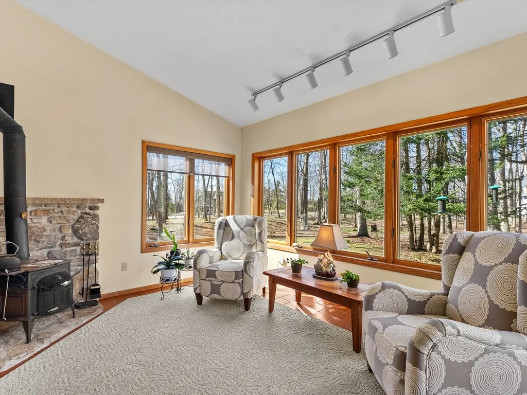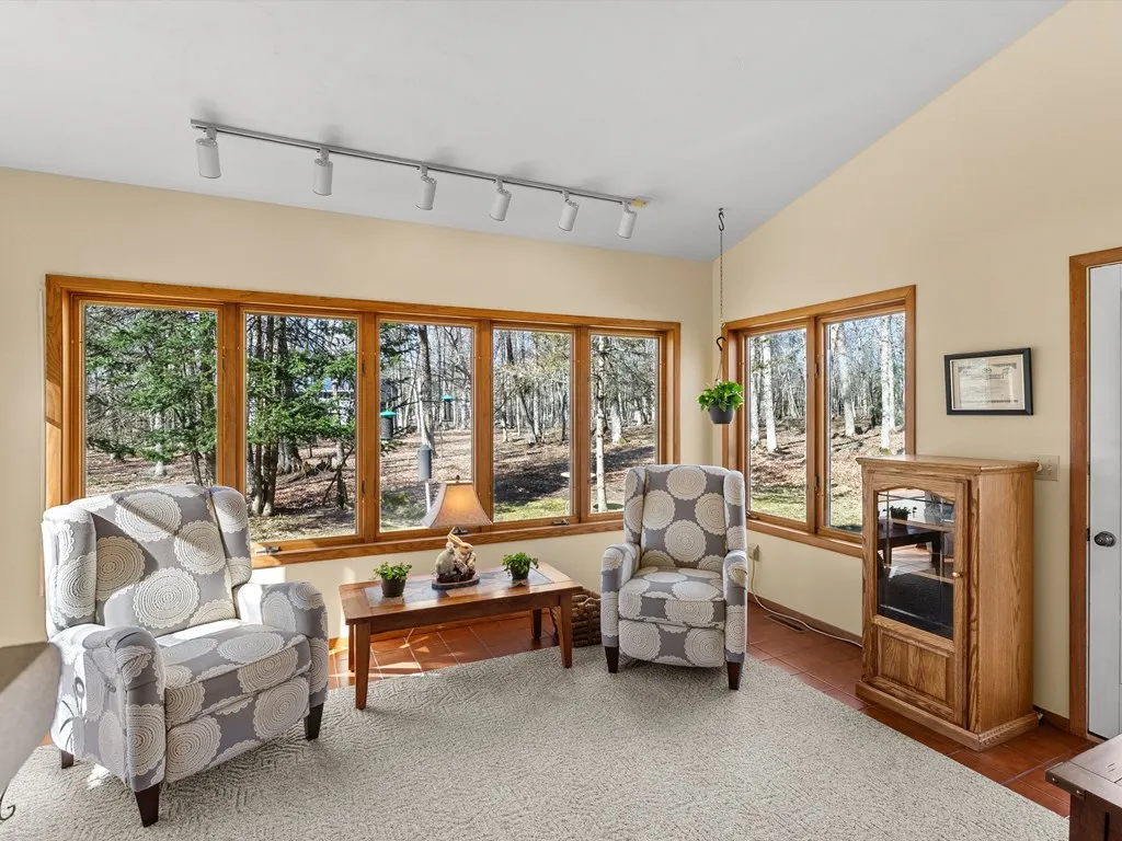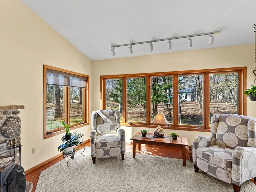Experience the privacy and natural beauty of Whitefish Point from this distinctive saltbox-style home on sought after Glidden Drive. Nestled on 1.56 wooded acres with beautiful views of Lake Michigan and deeded access to the the sandy beach, this property offers a rare chance to enjoy the best of Door County. Vaulted ceilings, granite countertops, custom cabinetry, and a floor to ceiling natural stone wood burning fireplace with heatilator add warmth and timeless appeal. The glass enclosed year round sunroom creates a stunning connection to the surrounding woods and changing seasons, while protected preservation land behind the home ensures exceptional privacy, peace and natural beauty.