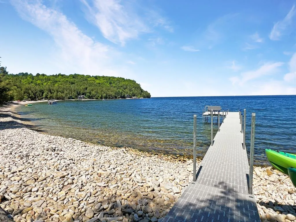 This is it – the final home available at COVE, a new luxury enclave of 12 single-family residences. Built by DeLeers Construction, this beautifully crafted home offers effortless Door County living with a main-level primary suite, guest suite, & office, plus additional sleeping & gathering space on the finished walkout level. Professionally staged and partially furnished, it’s ready for you to move in and start enjoying life by the water. Owners have private shore access to a swim pier and Pebble Beach for swimming, kayaking, & paddleboarding on Little Sister Bay. Furniture and accessories are included, and the interior designer is available to assist with furnishing the remaining rooms—new construction made stress free!